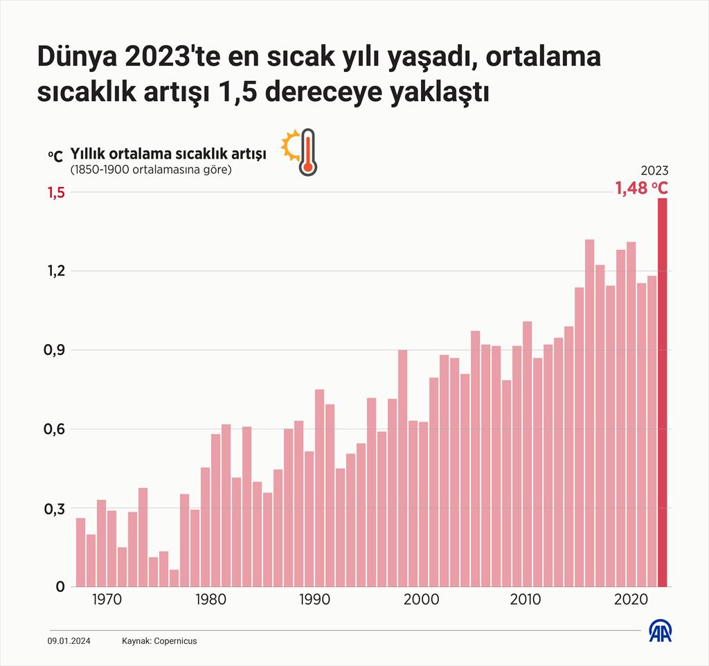- Dünyada 2023, ilk kez küresel ortalama sıcaklık artışının