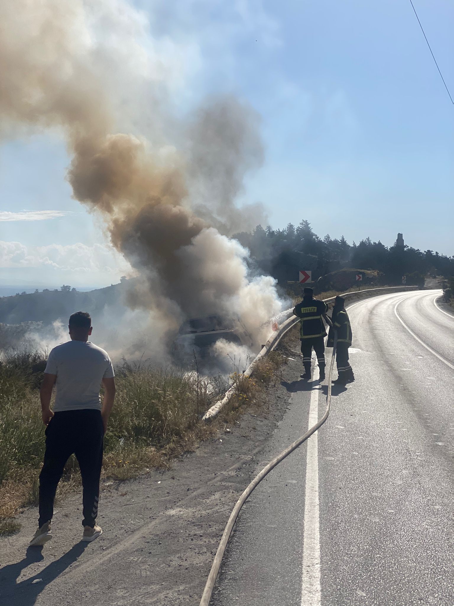El freni çekili kalan seyir halindeki araç yandı