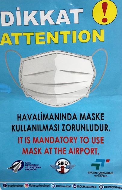 Ercan Havalimanı binası içerisinde maske takma zorunluluğu getirildi