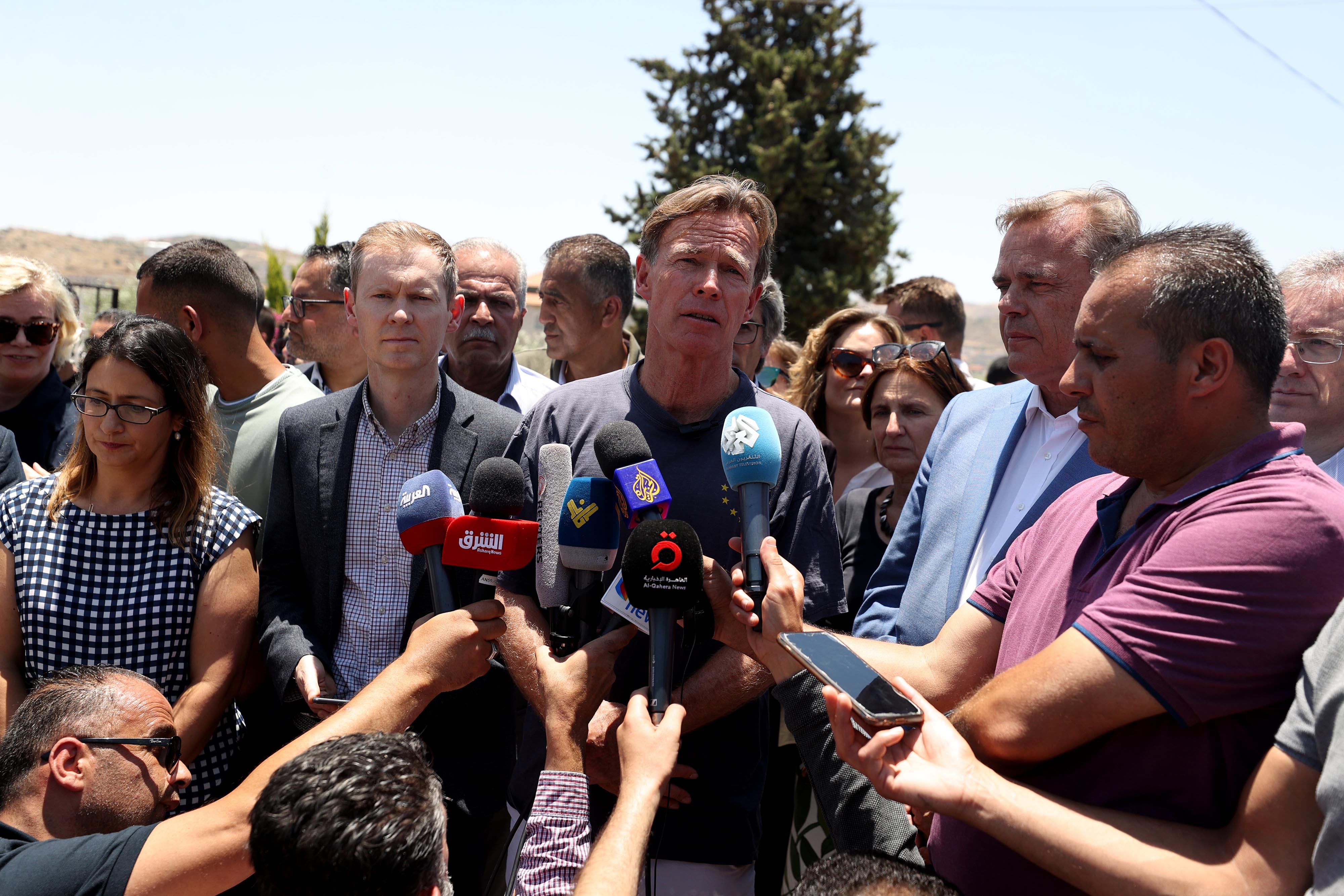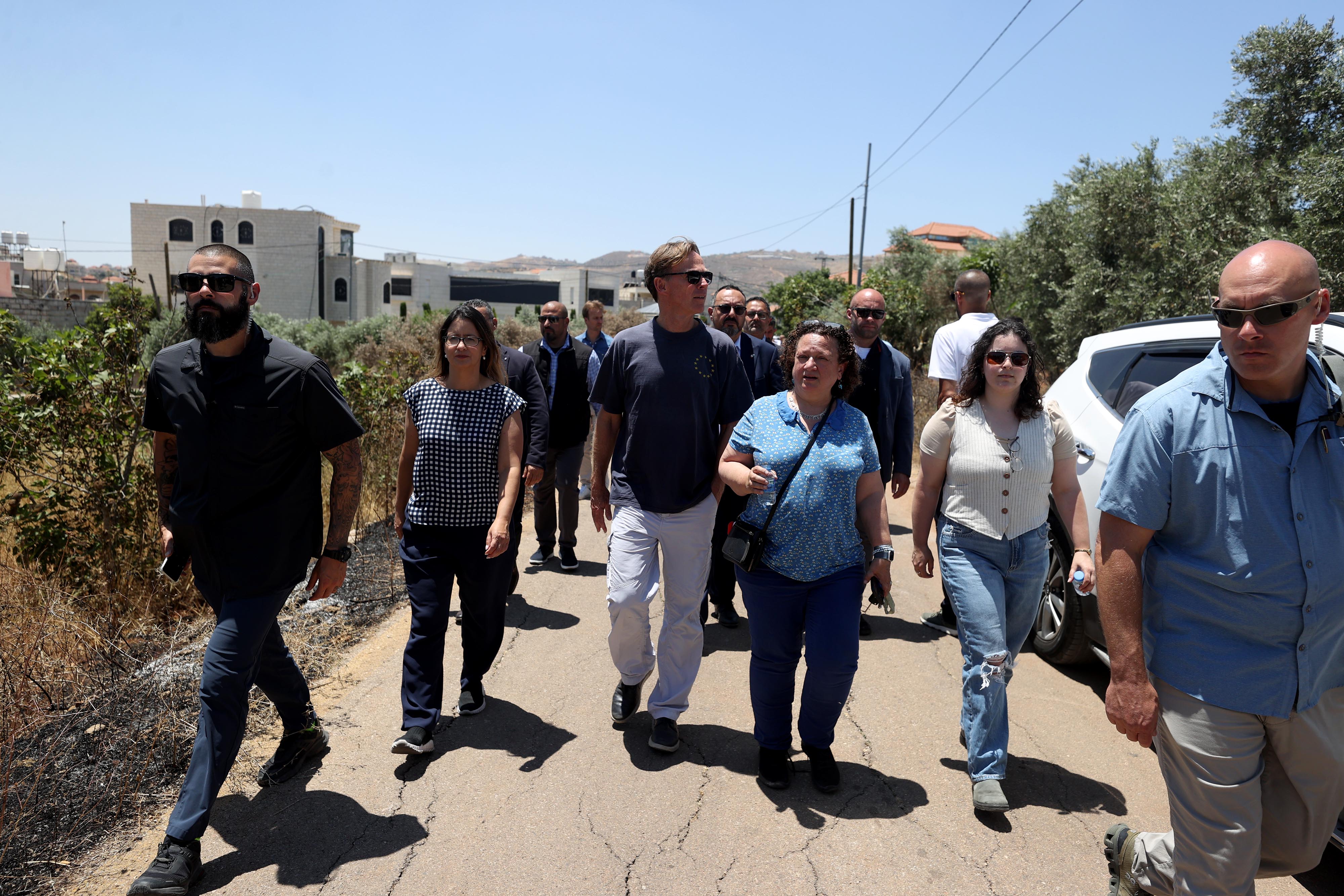Filistin'deki 20 büyükelçi, Yahudi yerleşimcilerin saldırdığı Turmusaya beldesini ziyaret etti