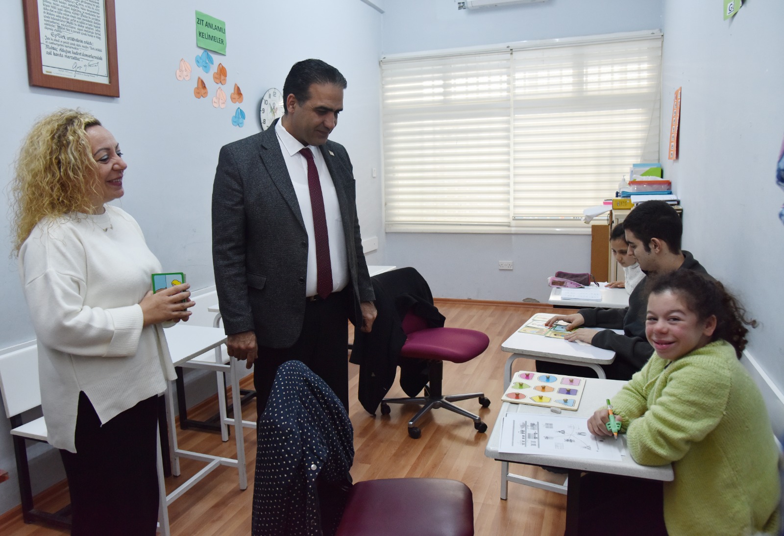 Lefkoşa, 14 Şubat 24 (TAK): Çalışma ve Sosyal Güvenlik Bakanı Sadık Gardiyanoğlu, Özel Eğitim Vakfı'nı (ÖZEV) ziyaret ederek, vakıf çalışanları ve öğrenciler ile görüştü.
