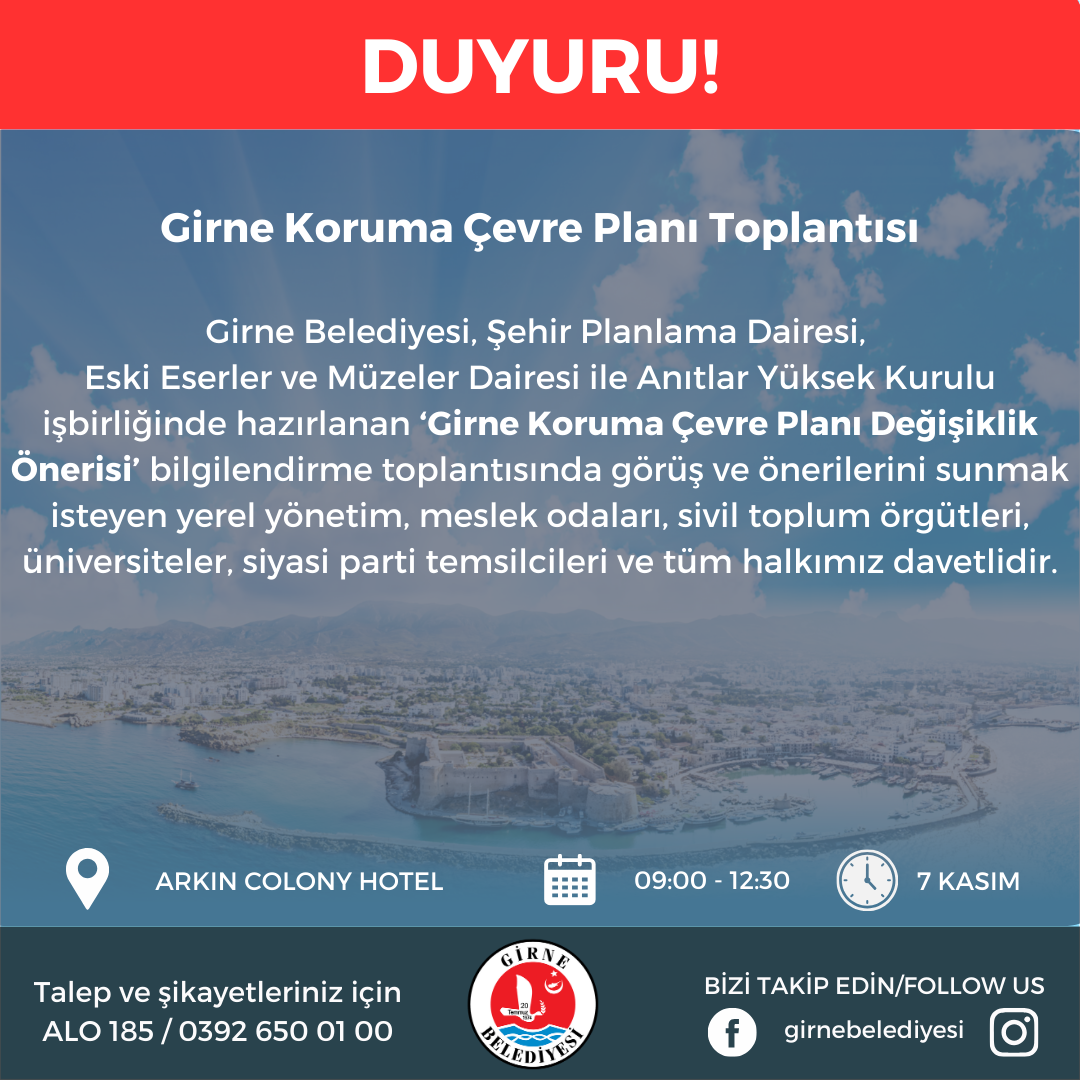 hazırlanan Girne Çevre Koruma Planı Değişiklik Önerisi ile ilgili bilgilendirme
