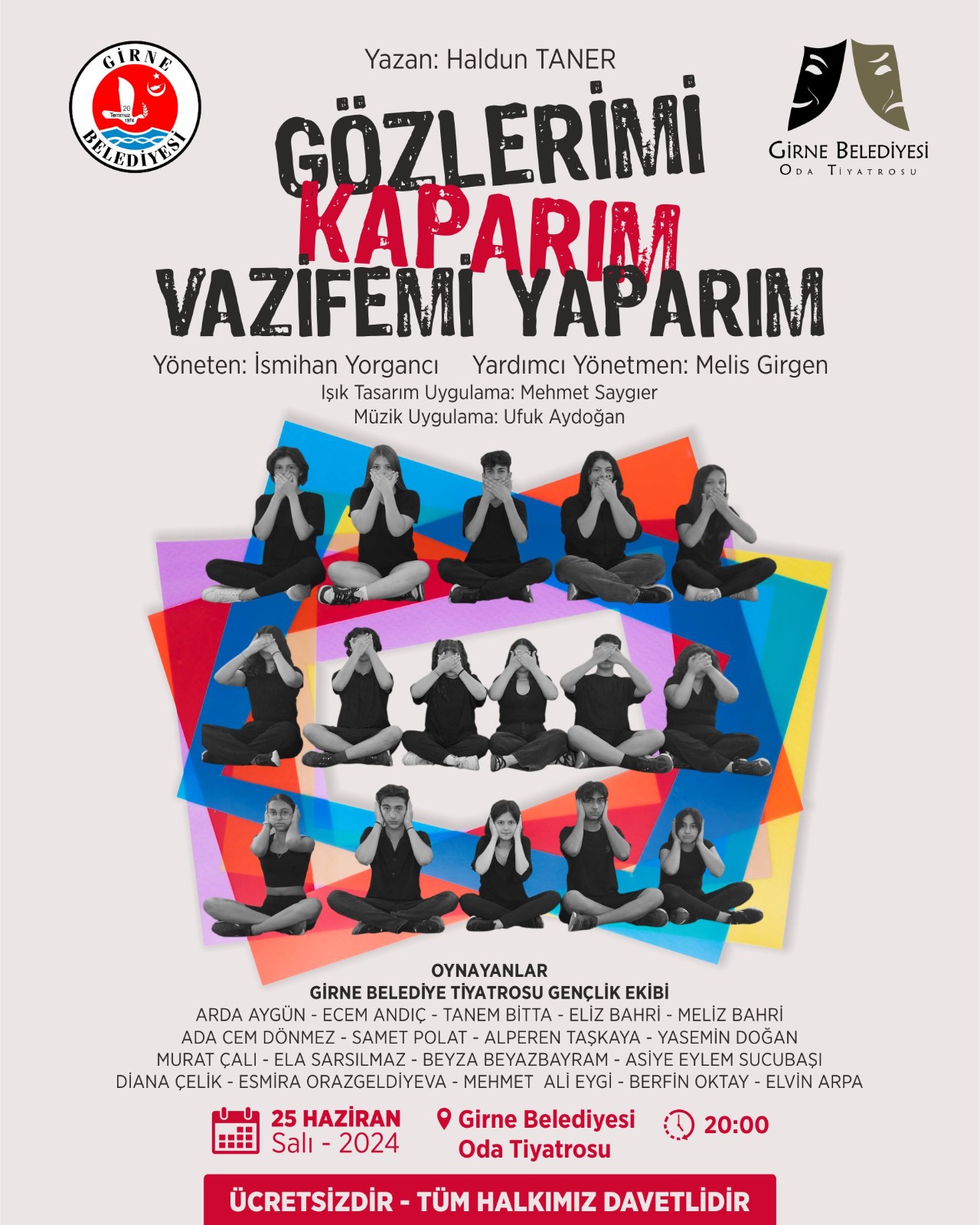 Lefkoşa, 24 Haziran 24 (TAK): Girne Belediye Tiyatrosu Gençlik Ekibi, ‘Gözlerimi Kaparım Vazifemi Yaparım’ oyununu yarın Girne Oda Tiyatrosu’nda sahneleyecek.