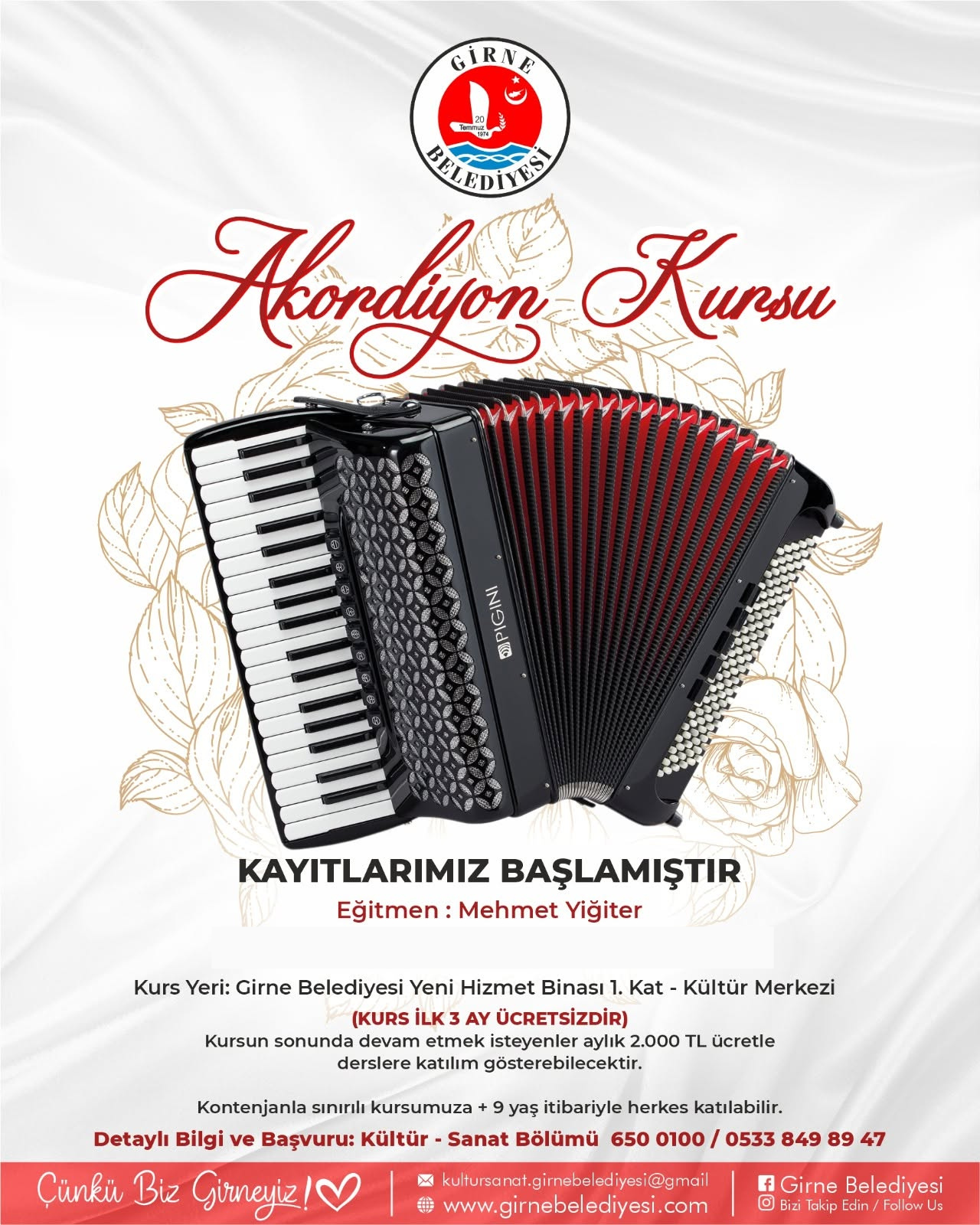 Lefkoşa, 1 Temmuz 25 (TAK): Girne Belediyesi bünyesinde 9 yaş ve üzeri tüm bireylerin katılabileceği akordiyon kursları başladı.
