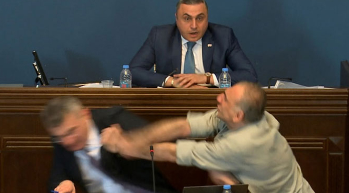Kutaisi, 16 Nisan 24 (TAK): Gürcistan meclisinde, hükümetin yasalaştırmak istediği "yabancı etkinin şeffaflığı" yasa tasarısı görüşmesi yumruklarla bölündü.