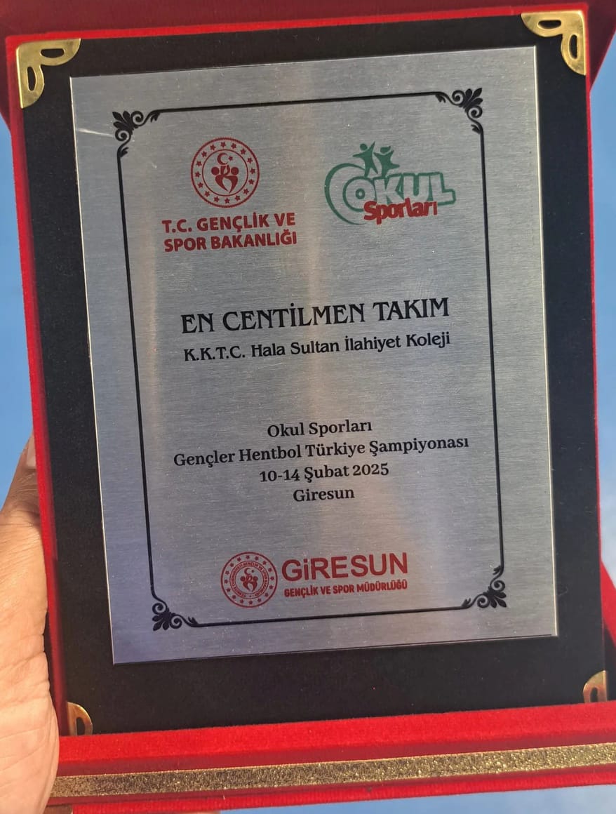 Lefkoşa, 16 Şubat 25 (TAK): Türkiye’de düzenlenen Okul Sporları Gençler (lise) Finallerine katılan Hala Sultan İlahiyat Koleji, “En Centilmen Takım” ödülü kazandı.