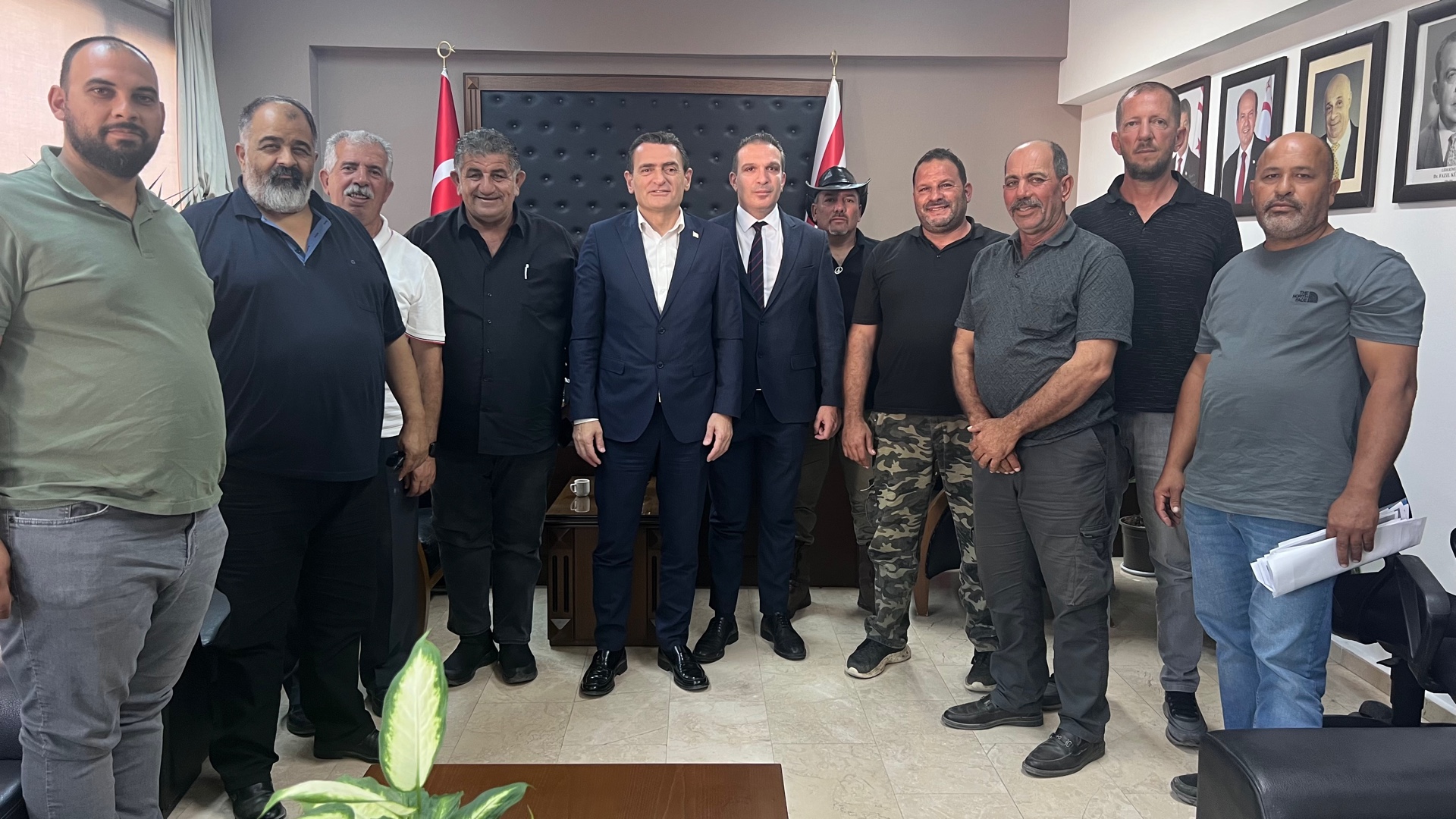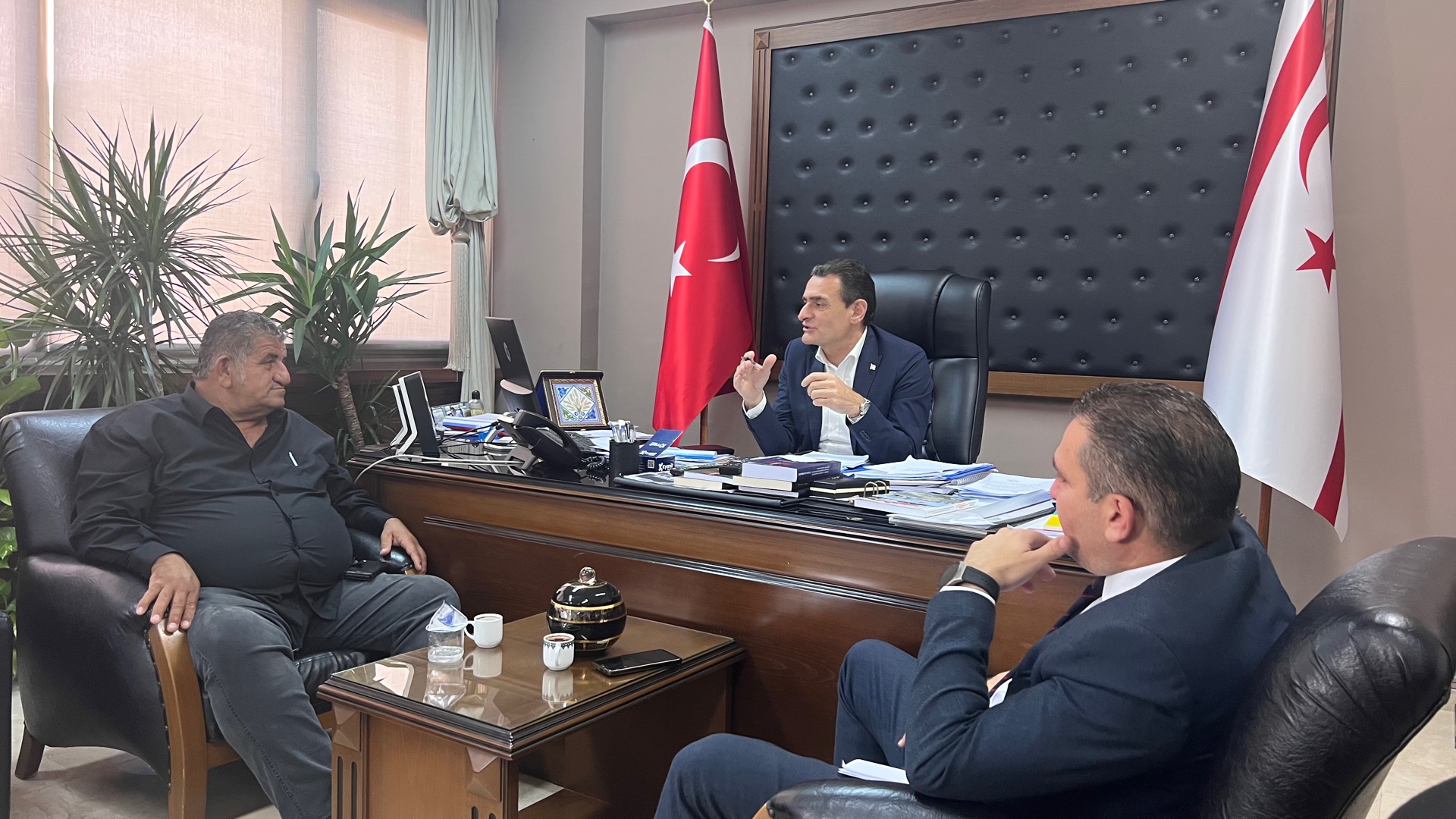 Lefkoşa, 15 Ekim 2023 (TAK): İçişleri Bakanı Dursun Oğuz, Hayvan Üreticileri ve Yetiştiricileri Birliği Başkanı Mustafa Naimoğulları ve beraberindeki heyeti kabul etti.
