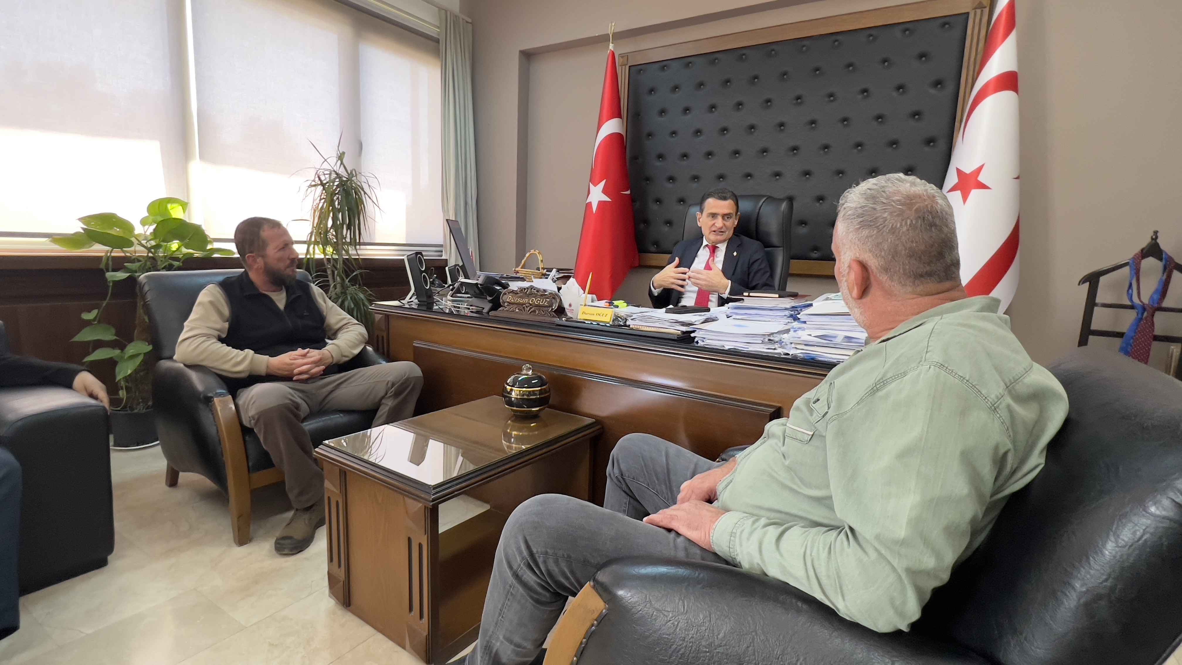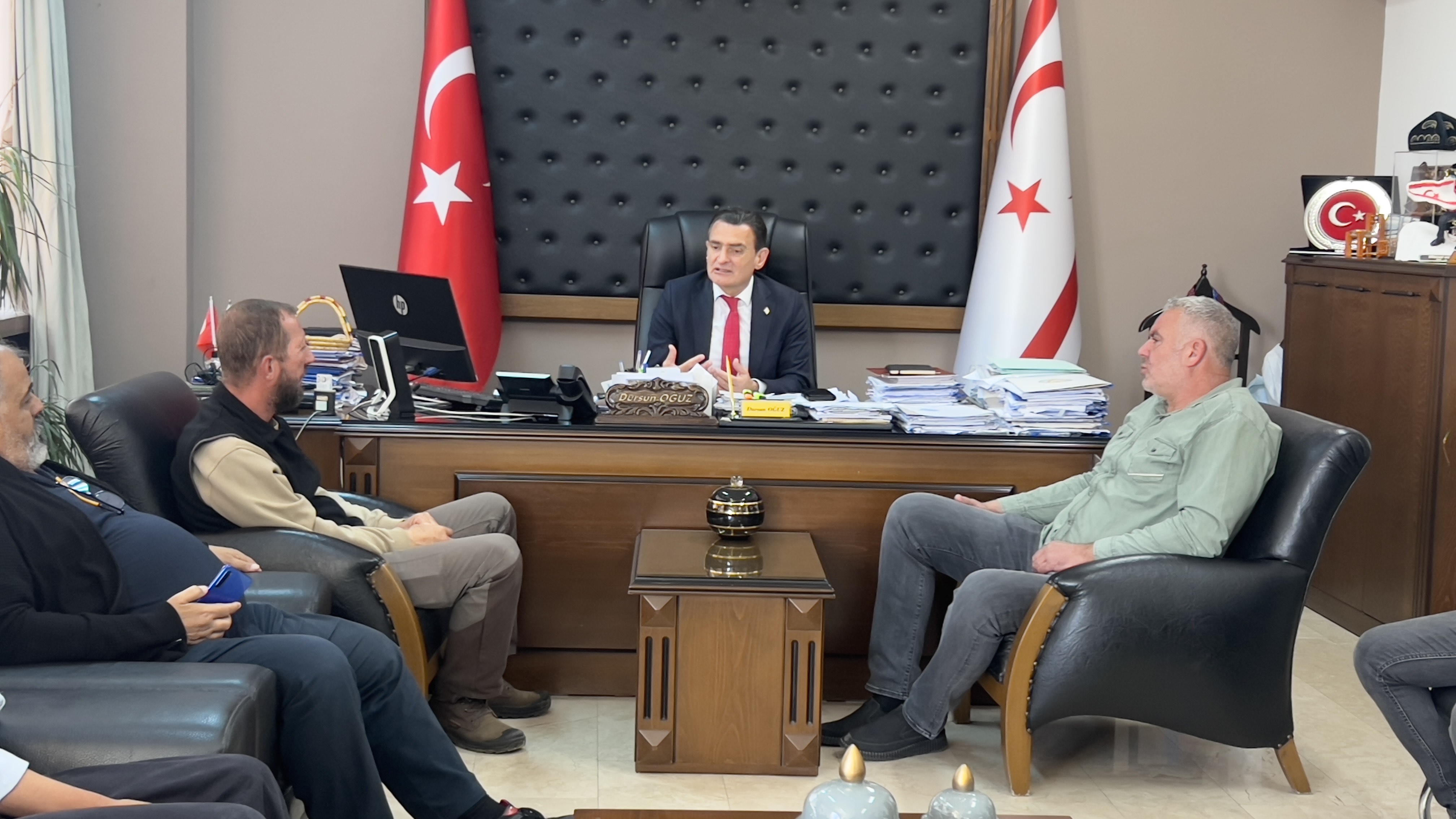 Lefkoşa, 9 Nisan 25 (TAK): İçişleri Bakanı Dursun Oğuz, Hayvan Üreticileri ve Yetiştiricileri Birliği Başkanı Adil Onalt ve beraberindeki heyeti kabul etti.