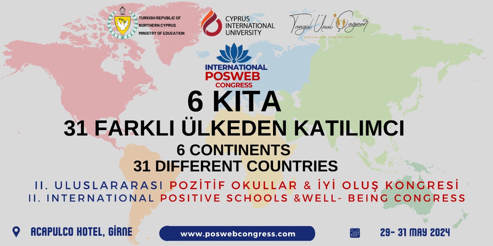Lefkoşa, 28 Mayıs 24 (TAK): Milli Eğitim Bakanlığı ve Tangül Ünal Çağıner Çocuklara Yardım Vakfı iş birliğiyle düzenlenen II. Uluslararası Pozitif Okullar ve İyi Oluş Kongresi yarın yapılıyor.