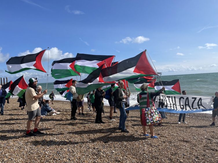 Brighton, 27 Ağustos 23 (TAK): İngiltere'nin sahil şehri Brighton'da Gazze ile dayanışmanın yanı sıra İsrail'in bölgeye uyguladığı ablukaya dikkati çekmek için uluslararası "Gazze ile yüz" etkinliği gerçekleştirildi.