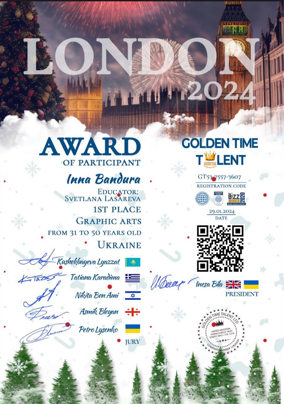 yarışmasında grafik sanatlarda birincilik ödülü alan Inna Bandura’ın 9 tuvalden