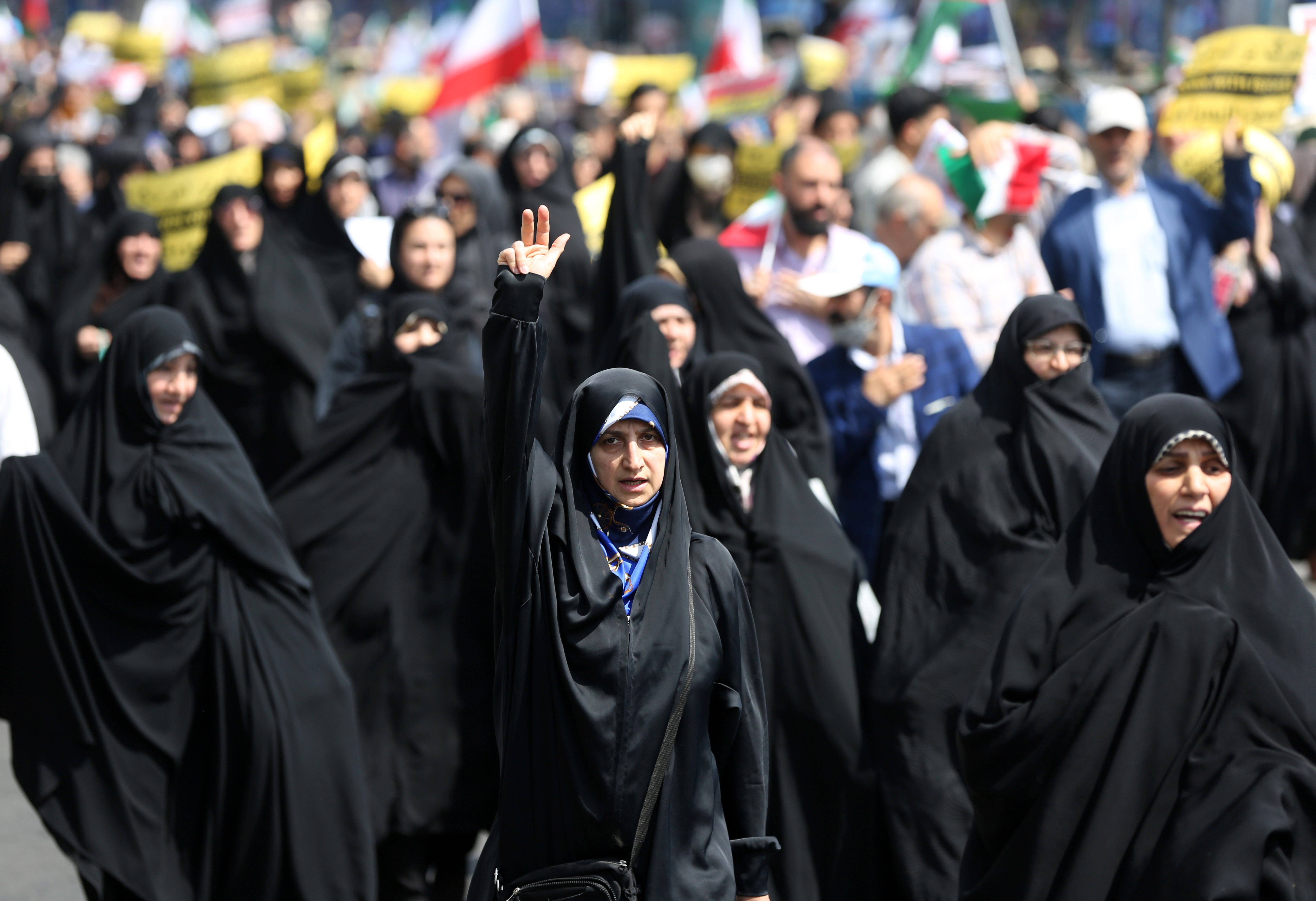 Tahran, 19 Nisan 24 (TAK): İran'da Tahran başta olmak üzere birçok kentte İran'ın 13 Nisan'da İsrail'e düzenlediği saldırıyı kutlamak ve bu sabah İsfahan ile Tebriz'de patlamalara neden olan saldırıyı gerçekleştirmekle suçlanan İsrail'i kınamak için yürüyüş yapıldı.