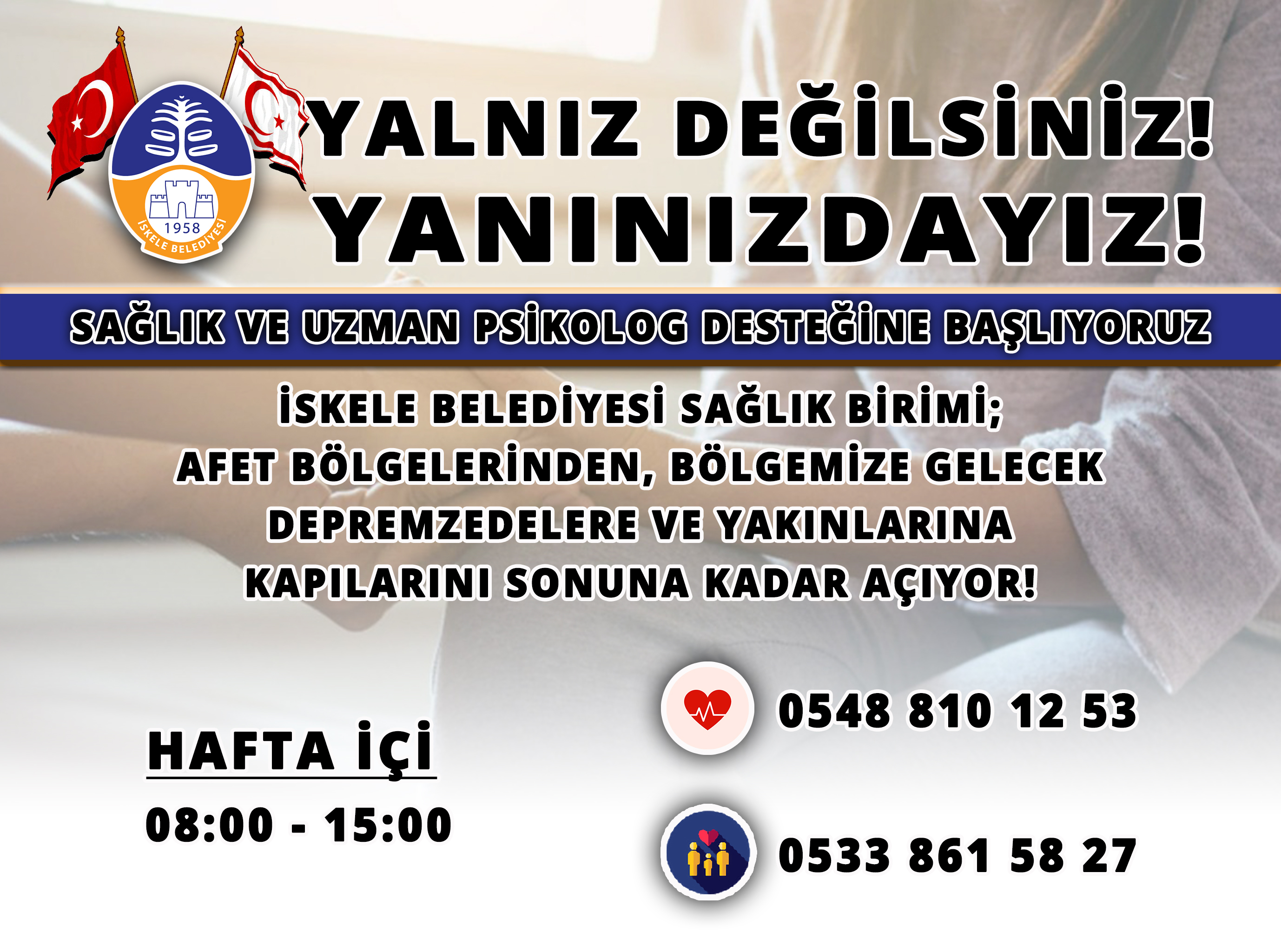 13 Şubat 23 (TAK): İskele Belediyesi, deprem bölgelerinden KKTC’ye gelerek,