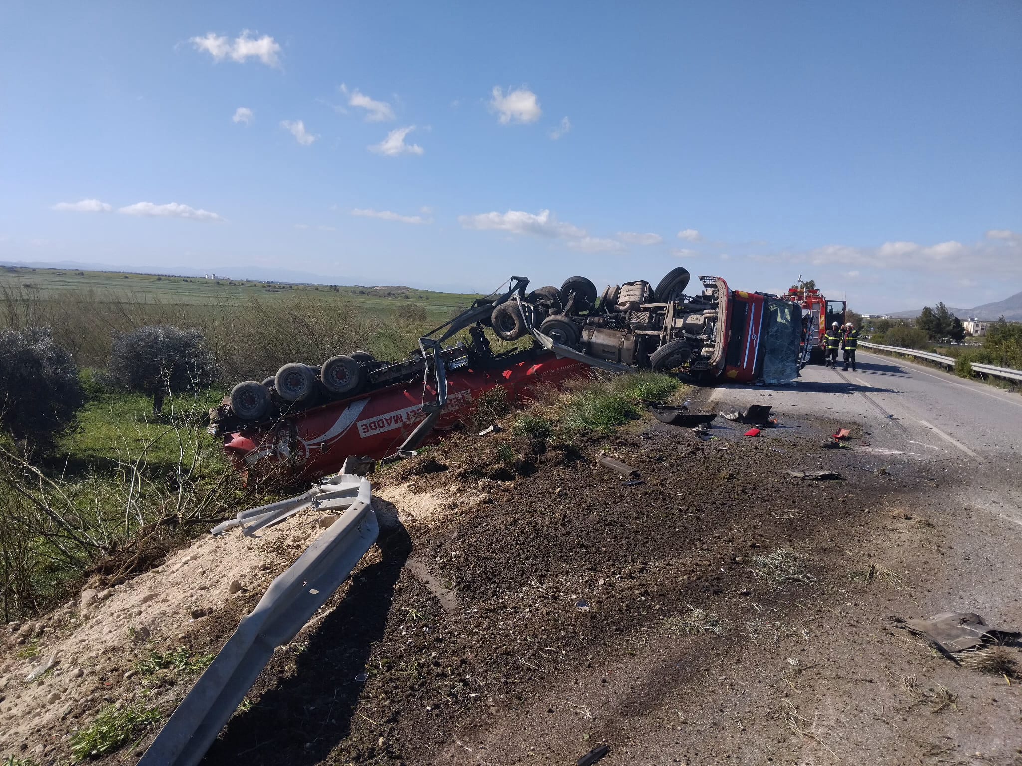Geçitkale - Gönendere arası akaryakıt yüklü tankerin devrilmesi sonucu yol çift