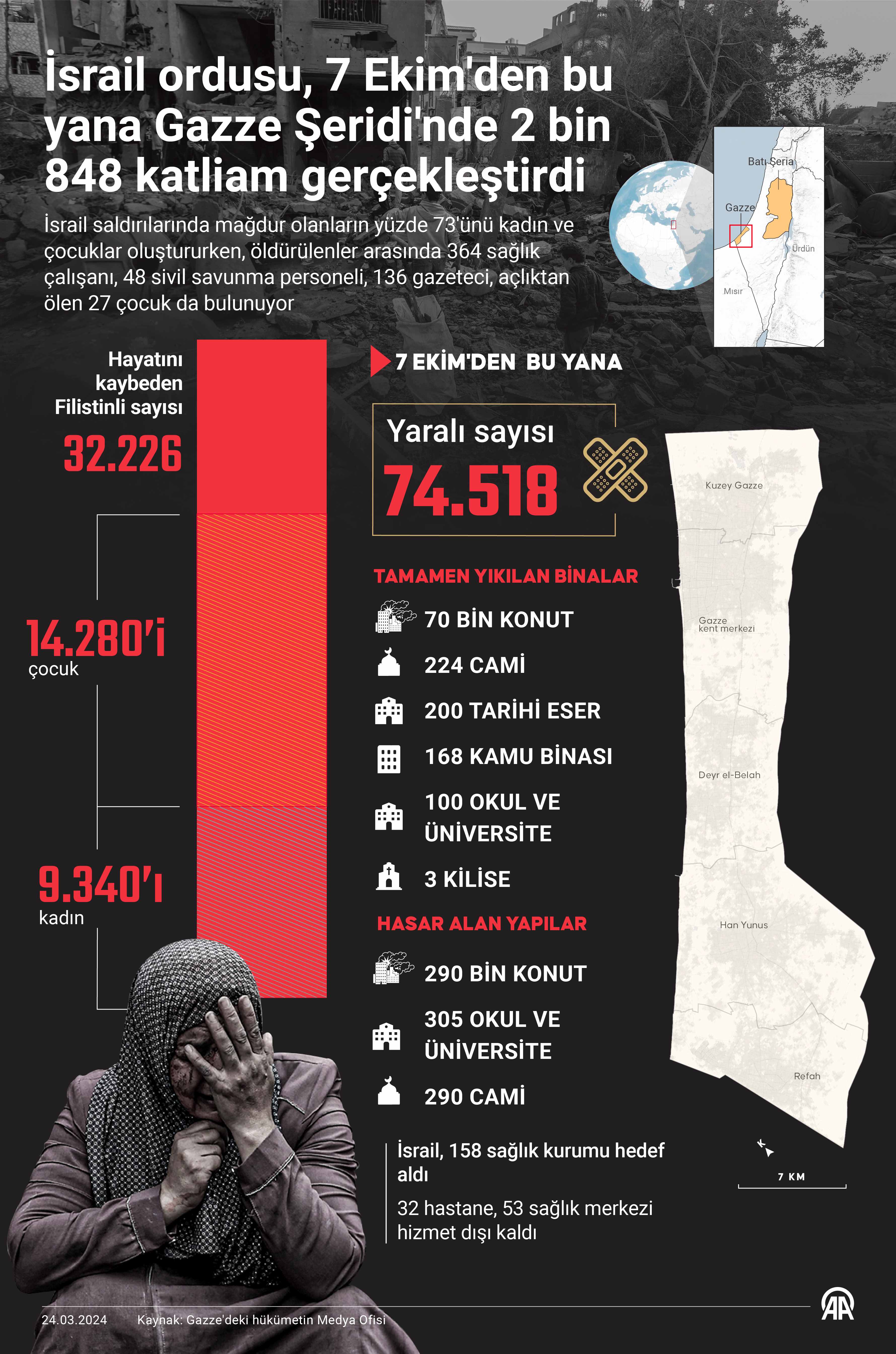 İsrail'in Gazze'ye 170 gündür düzenlediği saldırılarda 14 bin 280 çocuk öldü
