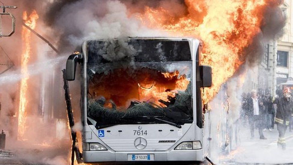İtalya’da bir yolcu otobüsü tünelde yandı