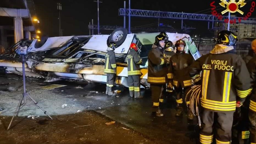 İtalya'da yolcu otobüsünün üst geçitten düşmesi sonucu 21 kişi hayatını kaybetti