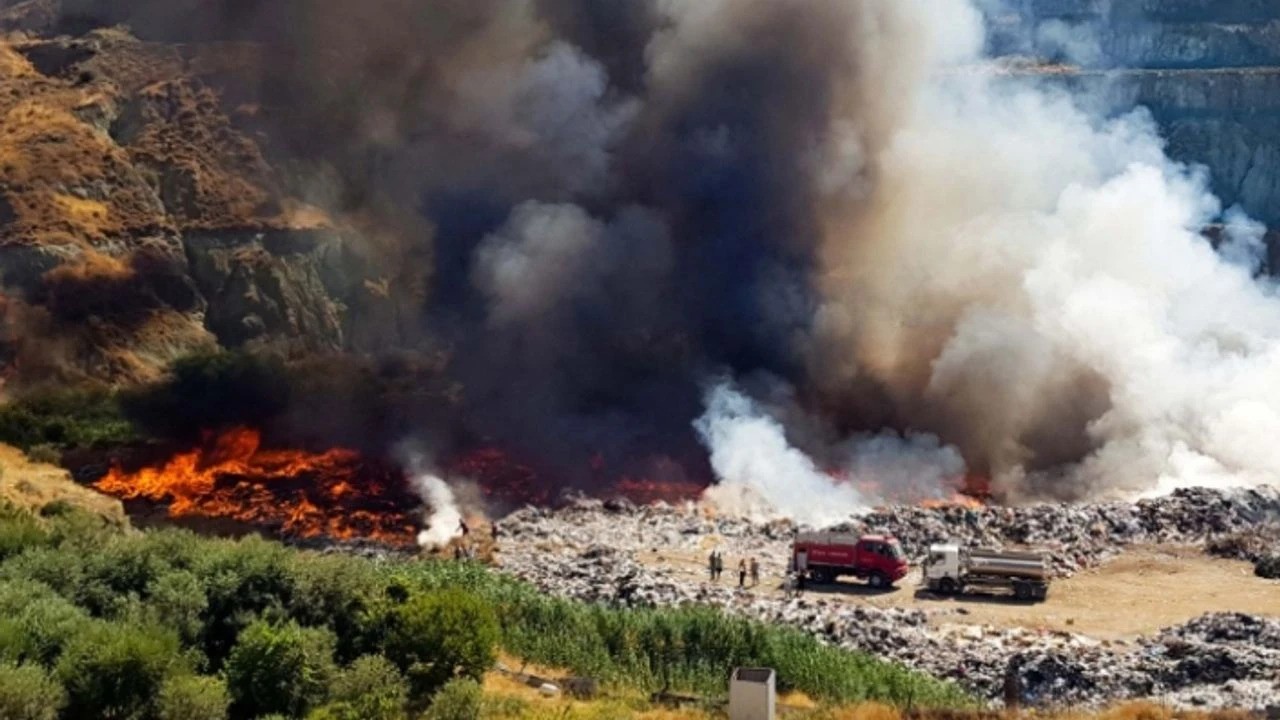 “10 gün süren mücadelenin ardından Lefke çöp depolama alanında minimum seviyeye getirilen yangın, bugün yeniden alevlendi, ekiplerimin söndürme çalışmaları devam ediyor”