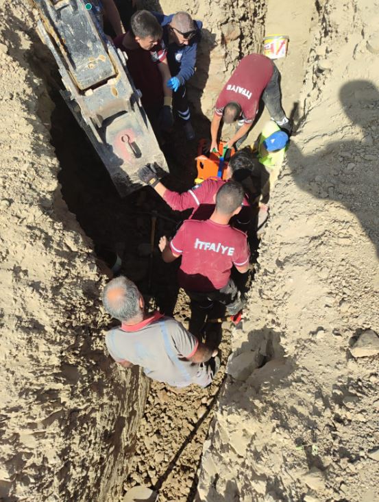 kayması sonucu ayakları toprak altında kalan bir işçi, yaralandı.