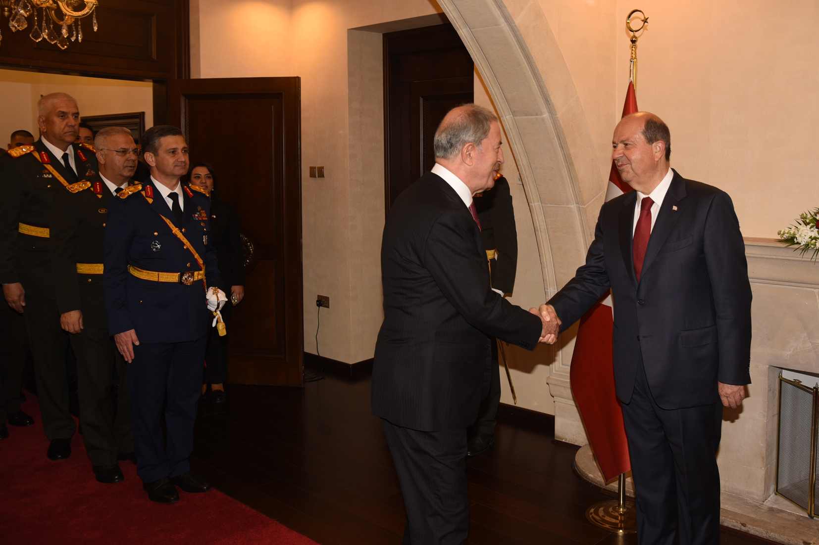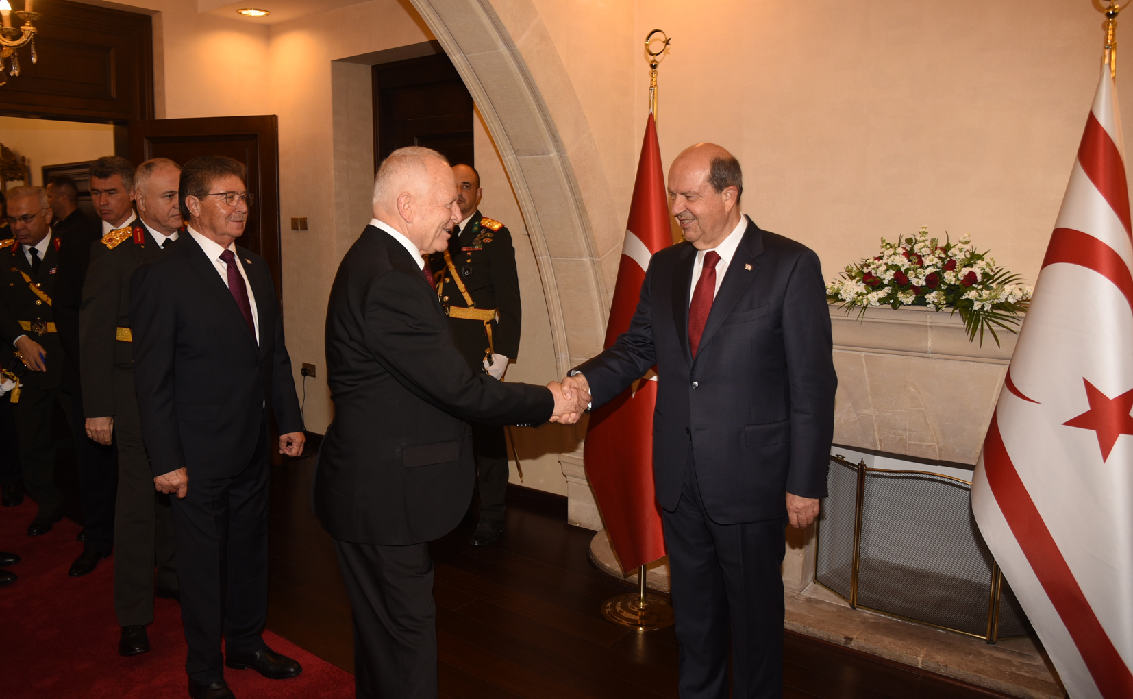 Lefkoşa, 15 Kasım 23 (TAK): Cumhurbaşkanı Ersin Tatar, 15 Kasım Cumhuriyet Bayramı dolayısıyla tebrik kabul etti.
