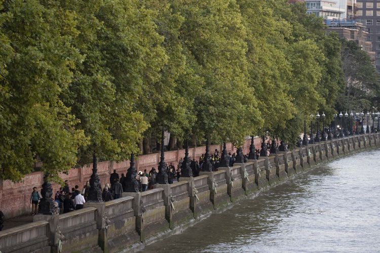 Londra, 16 Eylül 22 (TAK): İngiltere Kraliçesi 2. Elizabeth'in başkent Londra'daki Westminster Hall'de halkın ziyaretine açılan naaşını görmek isteyenlerin oluşturduğu kuyruk, kapasitesine ulaşınca sıraya girişler en az 6 saatliğine durduruldu.