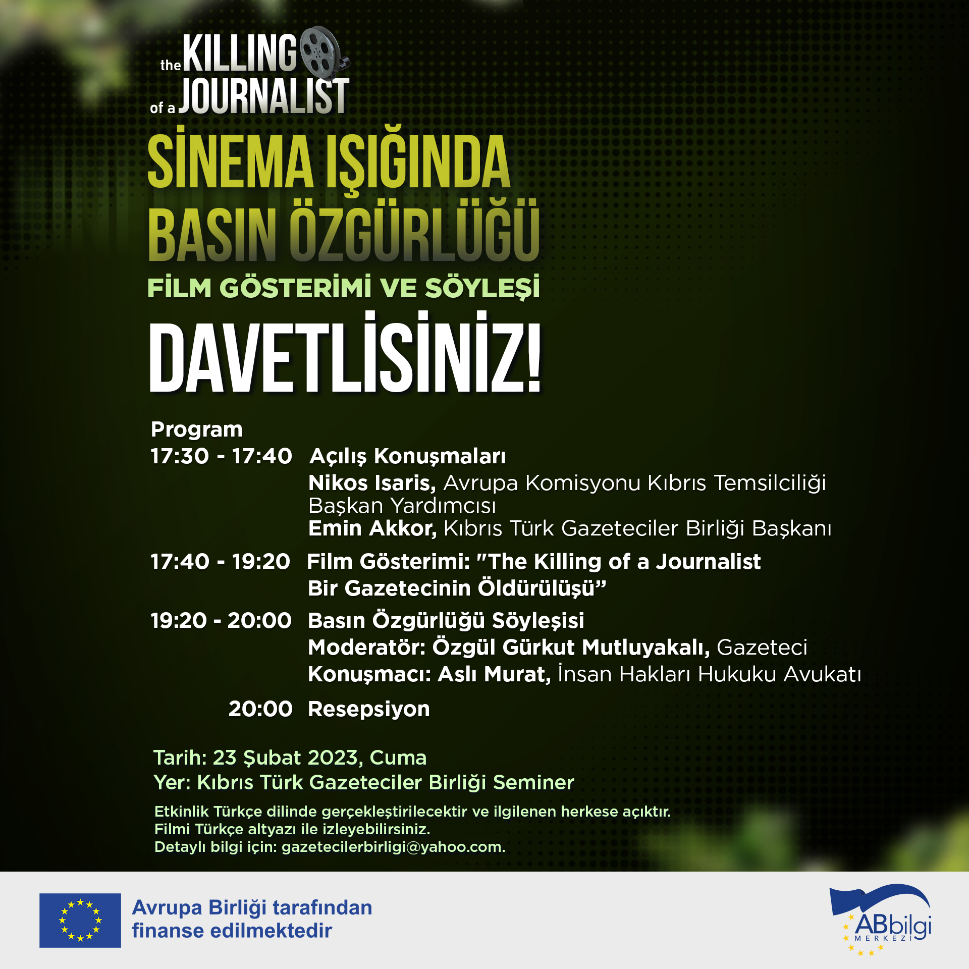 “Bir Gazetecinin Öldürülüşü” adlı film gösterilecek; basın özgürlüğü konulu mini söyleşi yapılacak