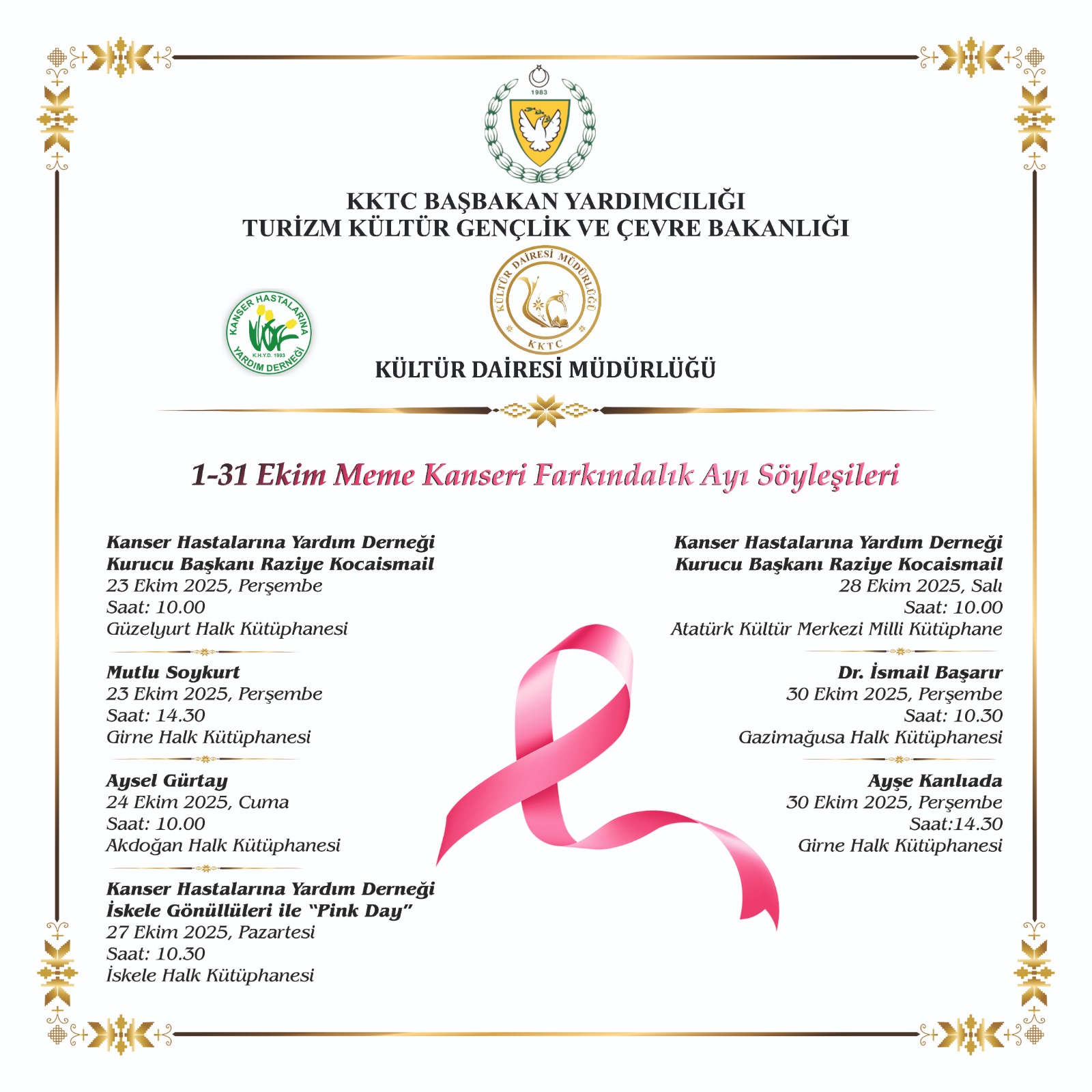 Bakanlığı’na bağlı Kültür Dairesi, 1-31 Ekim Meme Kanseri Farkındalık Ayı için