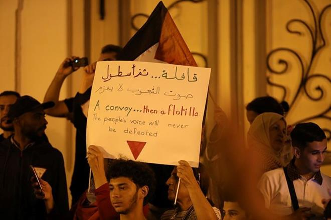 Tunus, 5 Ekim 26 (TAK): Tunus'un başkentinde toplanan yüzlerce kişi, İsrail'in Küresel Sumud Filosu'na saldırısını protesto etti.