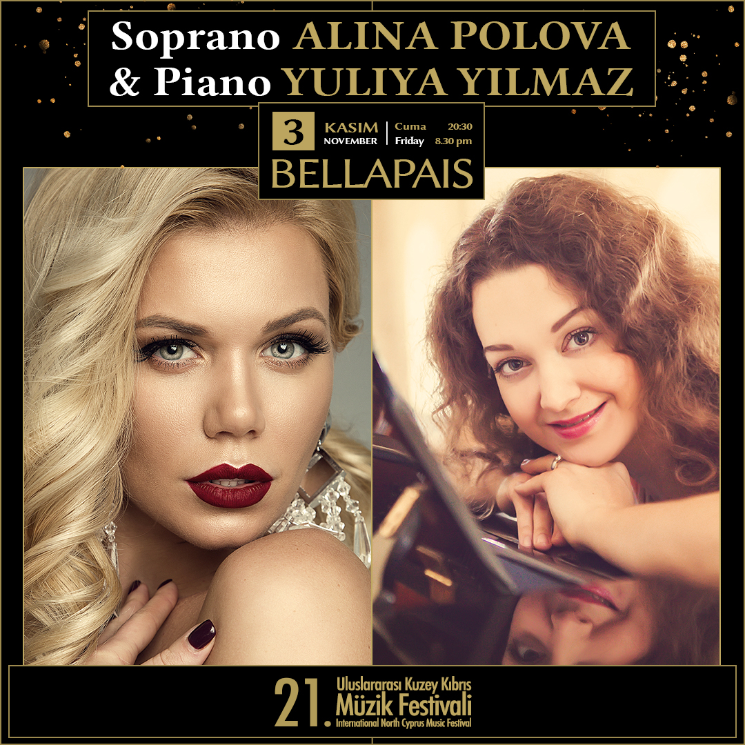 Lefkoşa, 2 Kasım 23 (TAK): Kuzey Kıbrıs Müzik Derneği' nin organizasyonunda bu yıl 21’incisi gerçekleştirilen Uluslararası Kuzey Kıbrıs Müzik Festivali soprano Alina Polova ve piyanist Yuliya Yılmaz konseri ile devam ediyor.