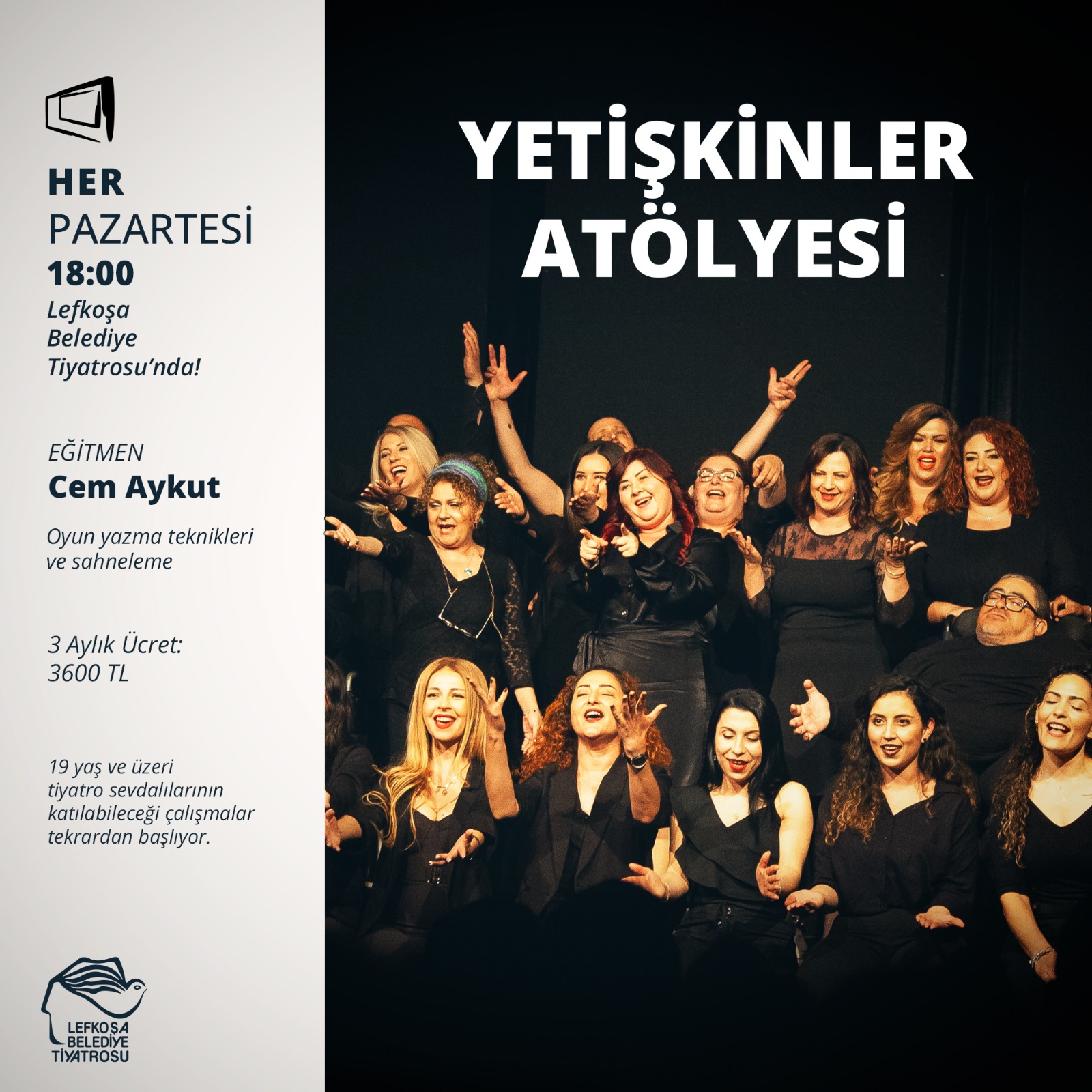 Lefkoşa, 6 Ocak 25 (TAK): Lefkoşa Belediye Tiyatrosu'nun Yetişkinler Atölyesi, açılacak yeni kurslar için tekrardan kayıt almaya başlıyor.