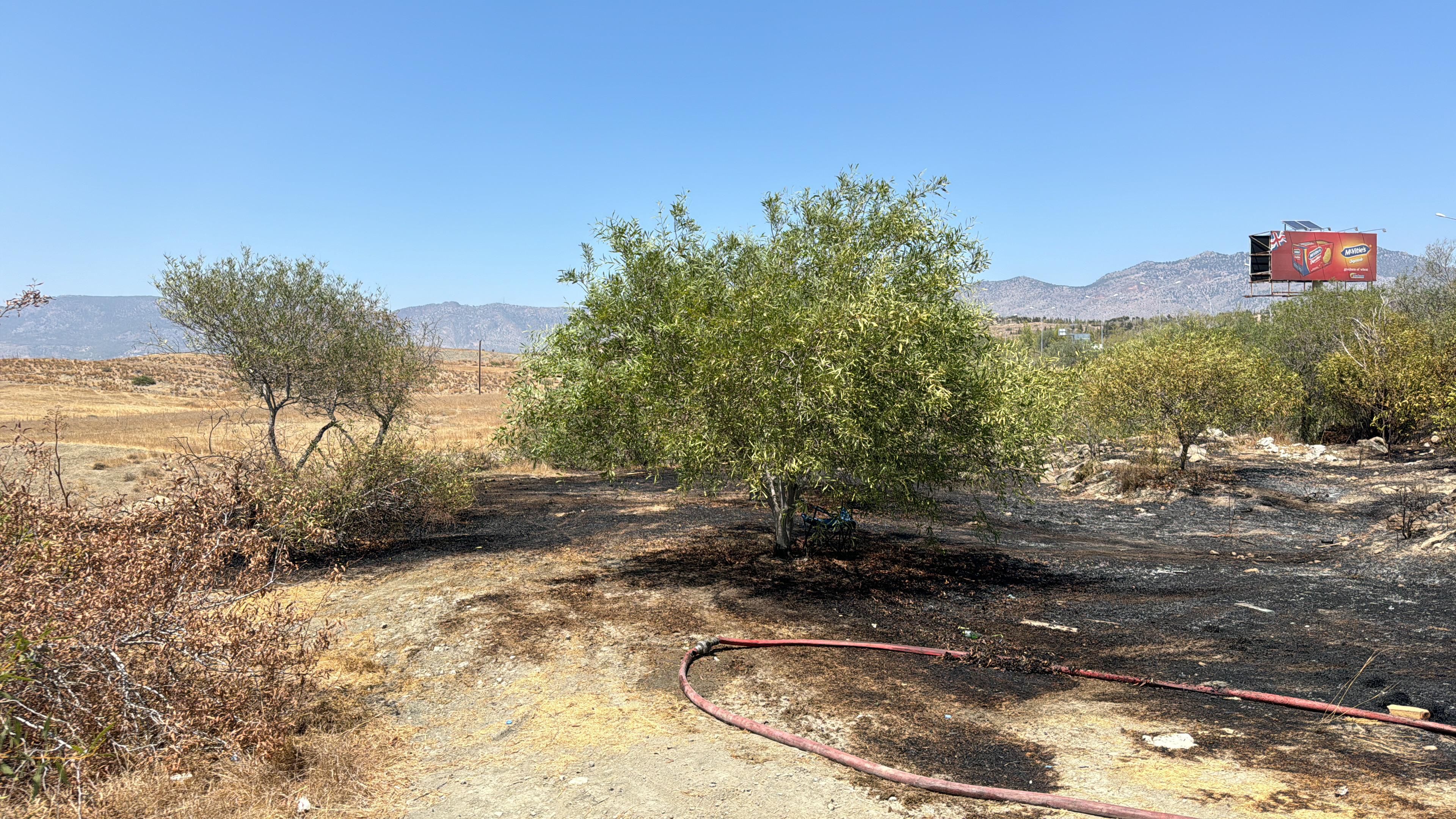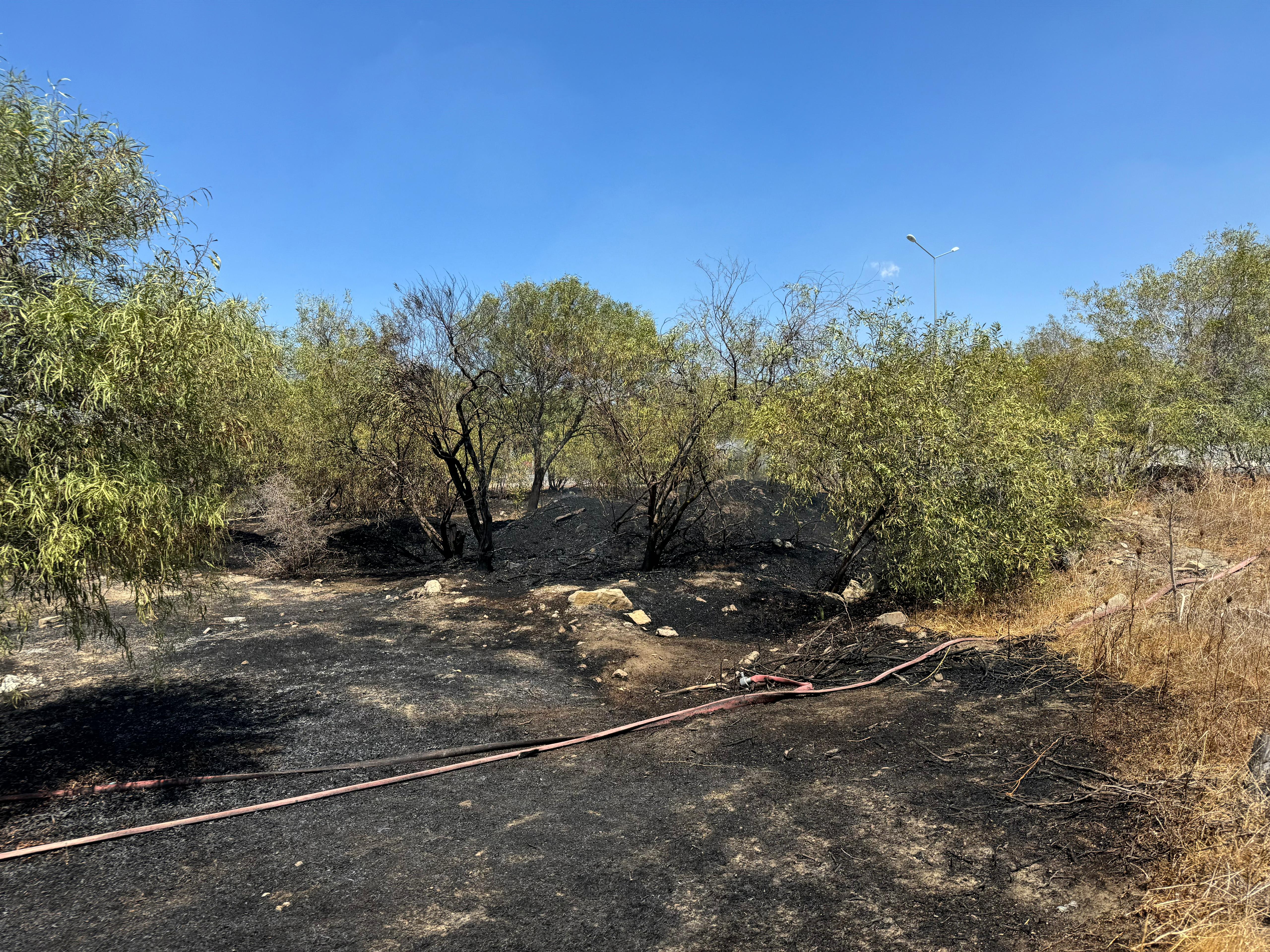 Lefkoşa, 8 Ağustos 24 (TAK): Lefkoşa-Girne ana yolunda çıkan yangında ağaçlar zarar gördü.