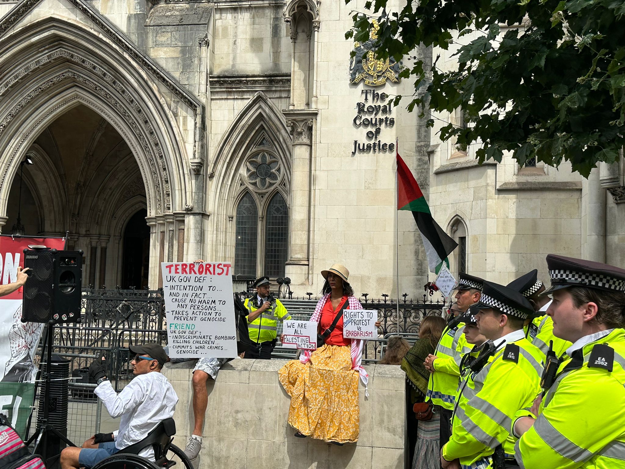 Londra, 4 Temmuz 25 (TAK): İngiltere'de İsrail'le iş yapan firmalara yönelik eylemleriyle tanınan "Palestine Action" grubunun hükümet tarafından terör örgütü ilan edilmesi girişimlerine karşı açılan davanın duruşması sırasında mahkeme binası önünde gruba destek eylemi düzenlendi.