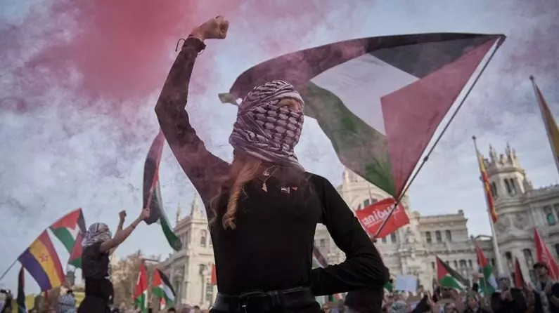 Madrid, 8 Şubat 24 (TAK): İspanya'nın başkenti Madrid'deki Reina Sofia Müzesi'nde bulunan ünlü ressam Pablo Picasso'nun "Guernica" adlı tablosunun önünde Filistin'e destek eylemi yapıldı.