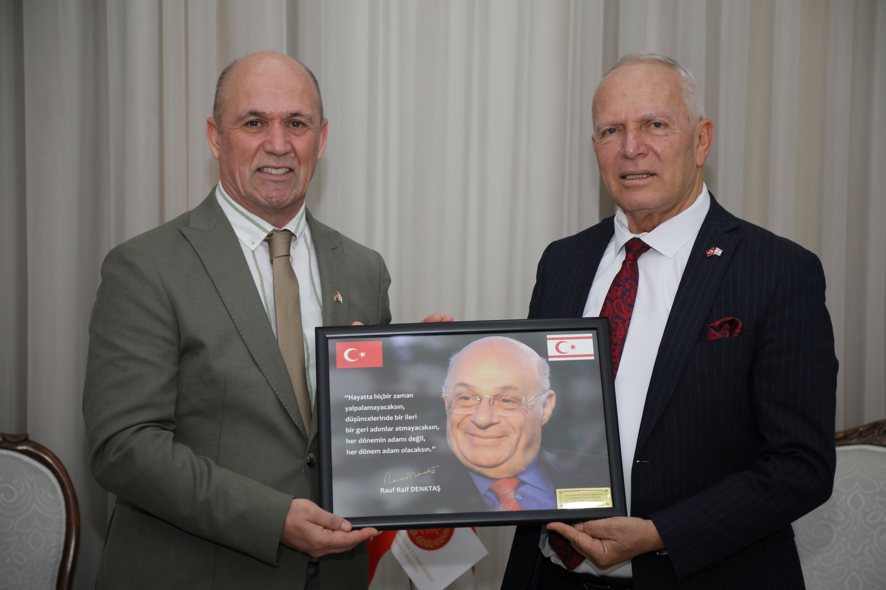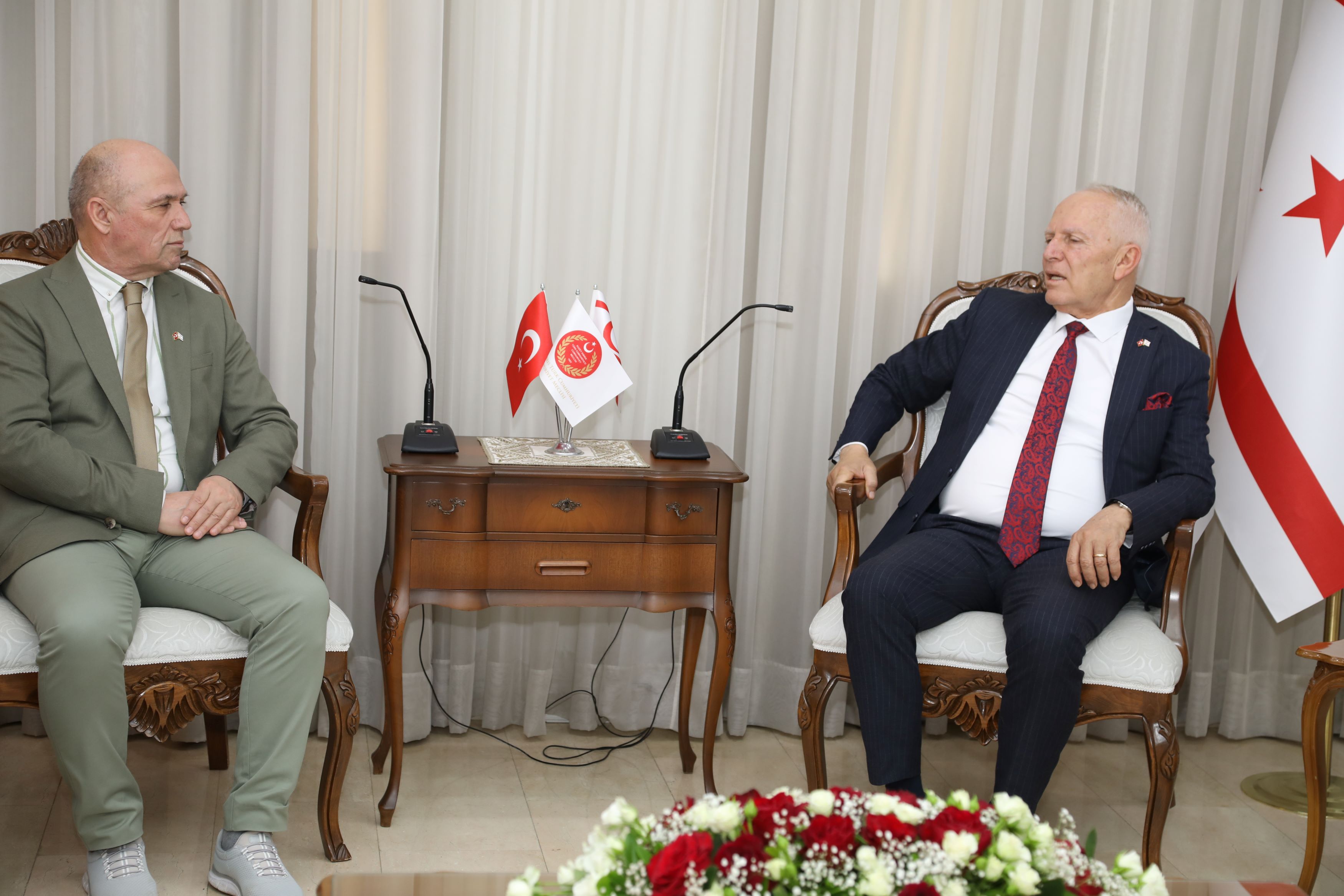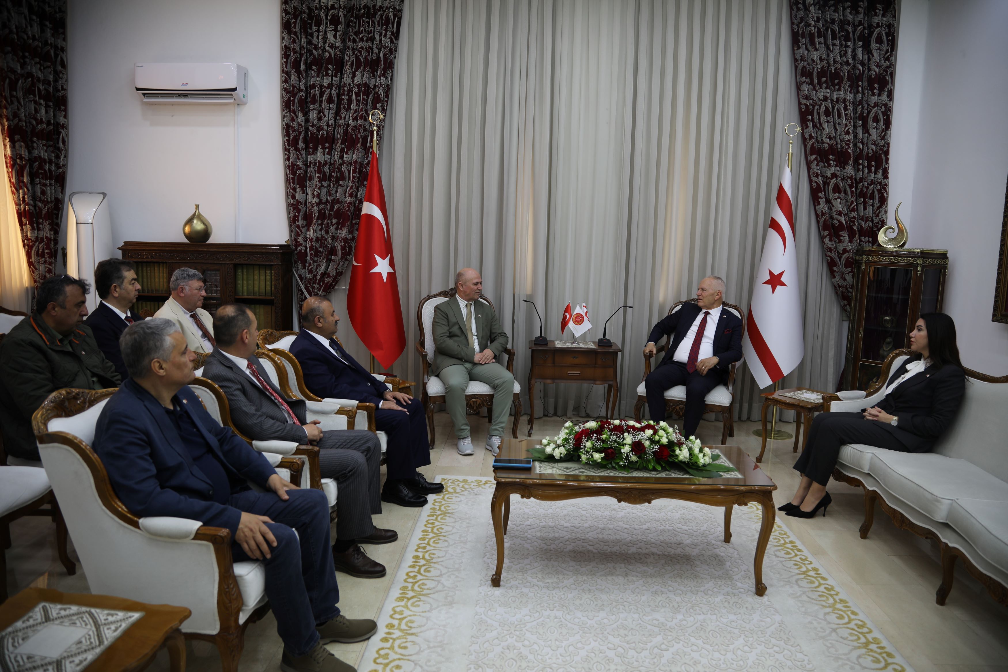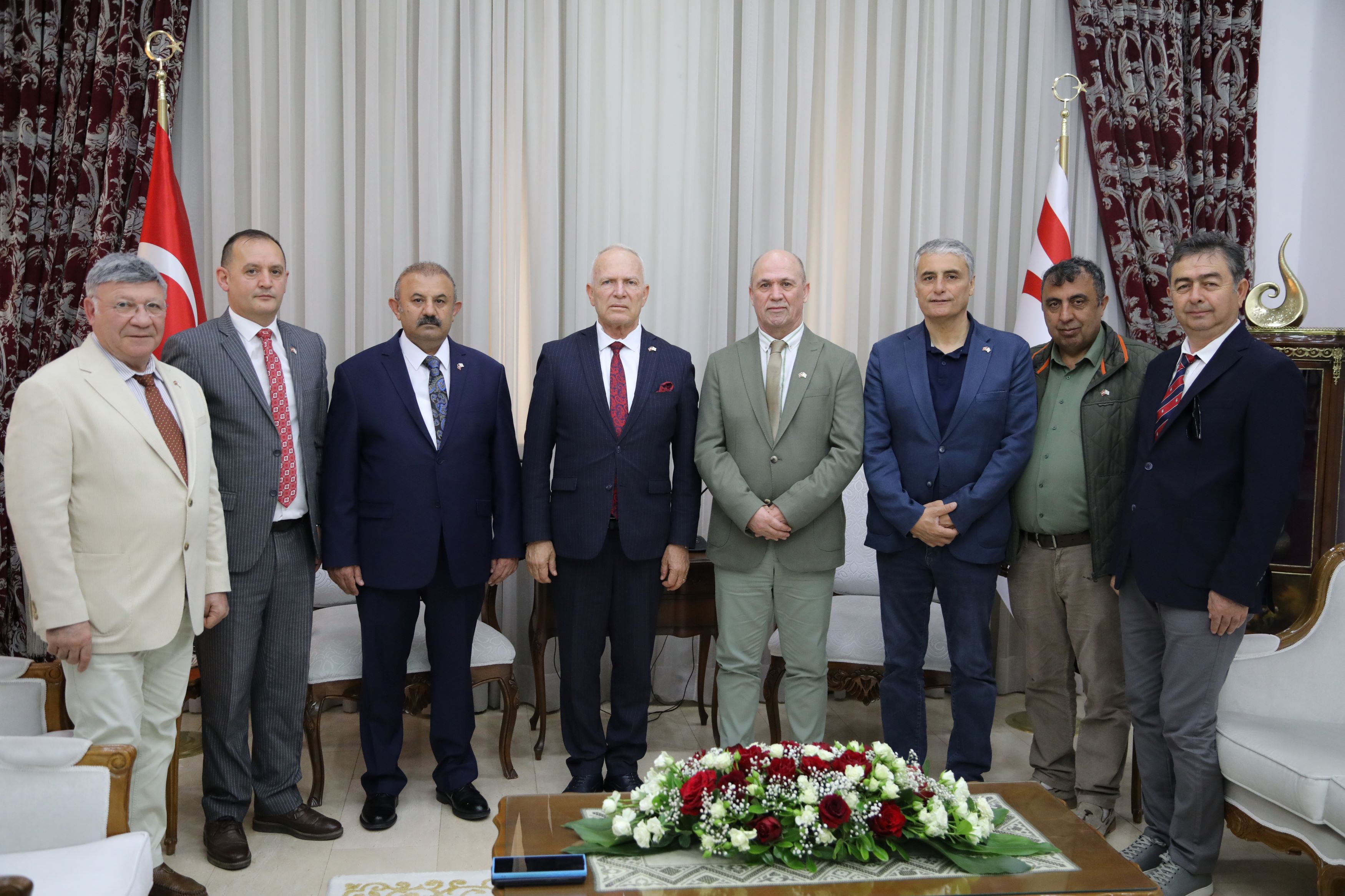 Lefkoşa, 24 Nisan 24 (TAK): Cumhuriyet Meclisi Başkanı Zorlu Töre, Nihat Polat başkanlığındaki Türkiye Sürücü Eğitimi İşverenler Sendikası heyetini kabul etti.
