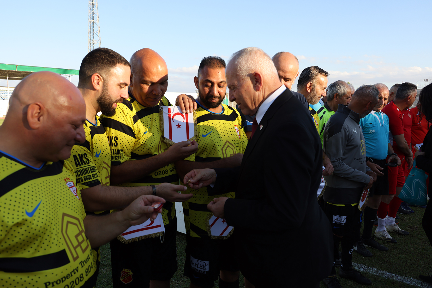 Lefkoşa, 17 Kasım 23 (TAK): Cumhuriyet Meclisi Futbol Takımı ile Londra Türk Master Takımı, KKTC'nin kuruluşunun 40. yıl dönümü nedeniyle futbol maçı yaptı.
