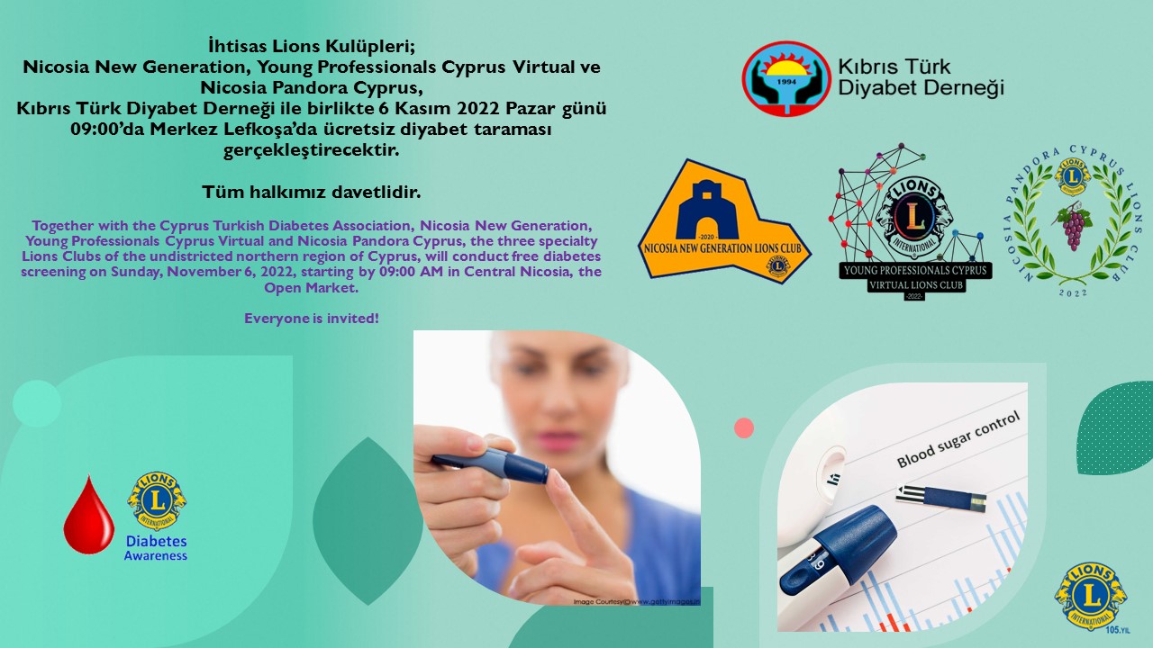 Pandora Cyprus Kulüpleri, tarafından bugün ücretsiz şeker taraması yapılıyor.