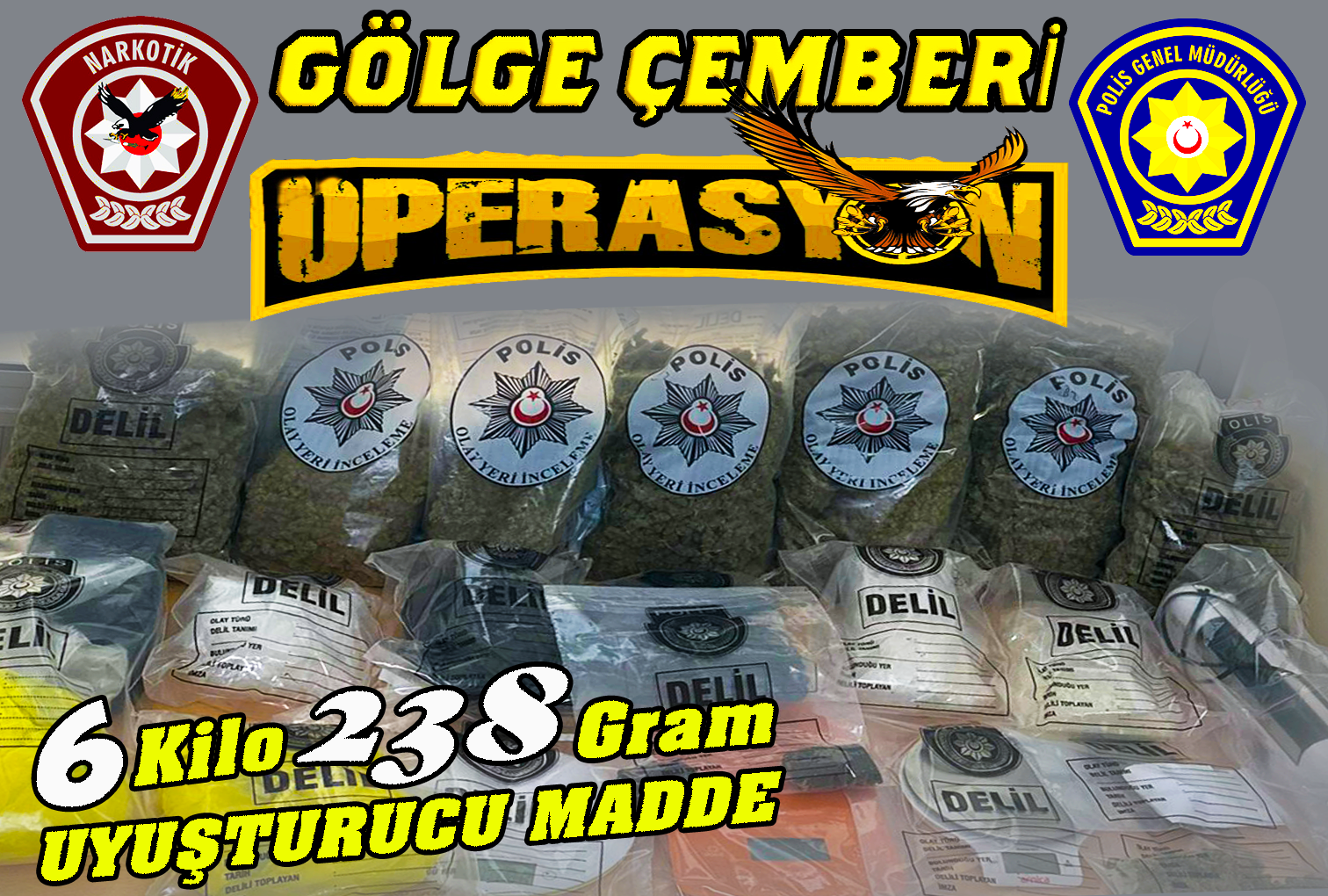 Narkotik “Gölge Çemberi Operasyonu” gerçekleştirdi..6 kilo 238 gram uyuşturucu bulundu