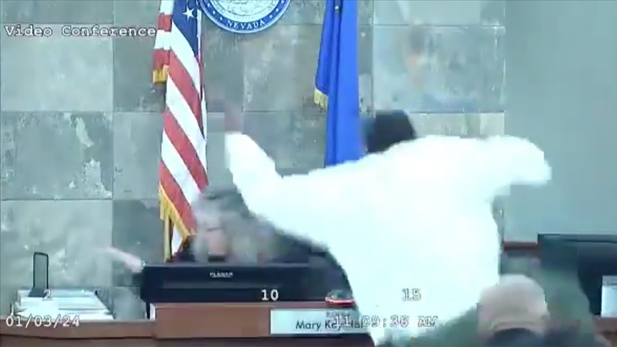 Ankara, 4 Ocak 24 (TAK): ABD'nin Nevada eyaletine bağlı Las Vegas kentinde şartlı tahliye talebi reddedilen sanık Deobra Redden, hakime saldırdı.