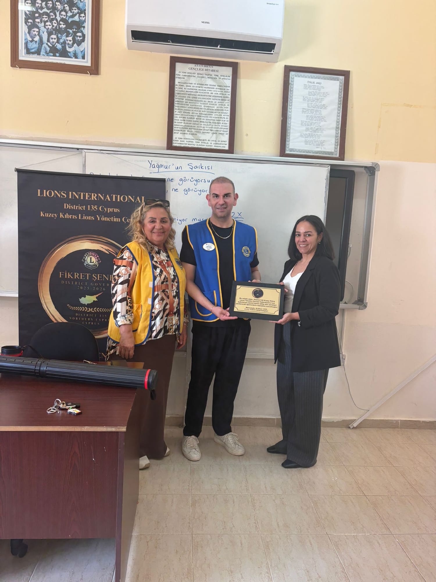 Lefkoşa, 25 Nisan 26 (TAK): District 135 Kuzey Kıbrıs Lions Yönetim Çevresi Federasyonu, eğitime destek çalışmaları kapsamında, Mehmetçik Ortaokulu’nun müzik odasına piyano ve stor perde bağışında bulundu.