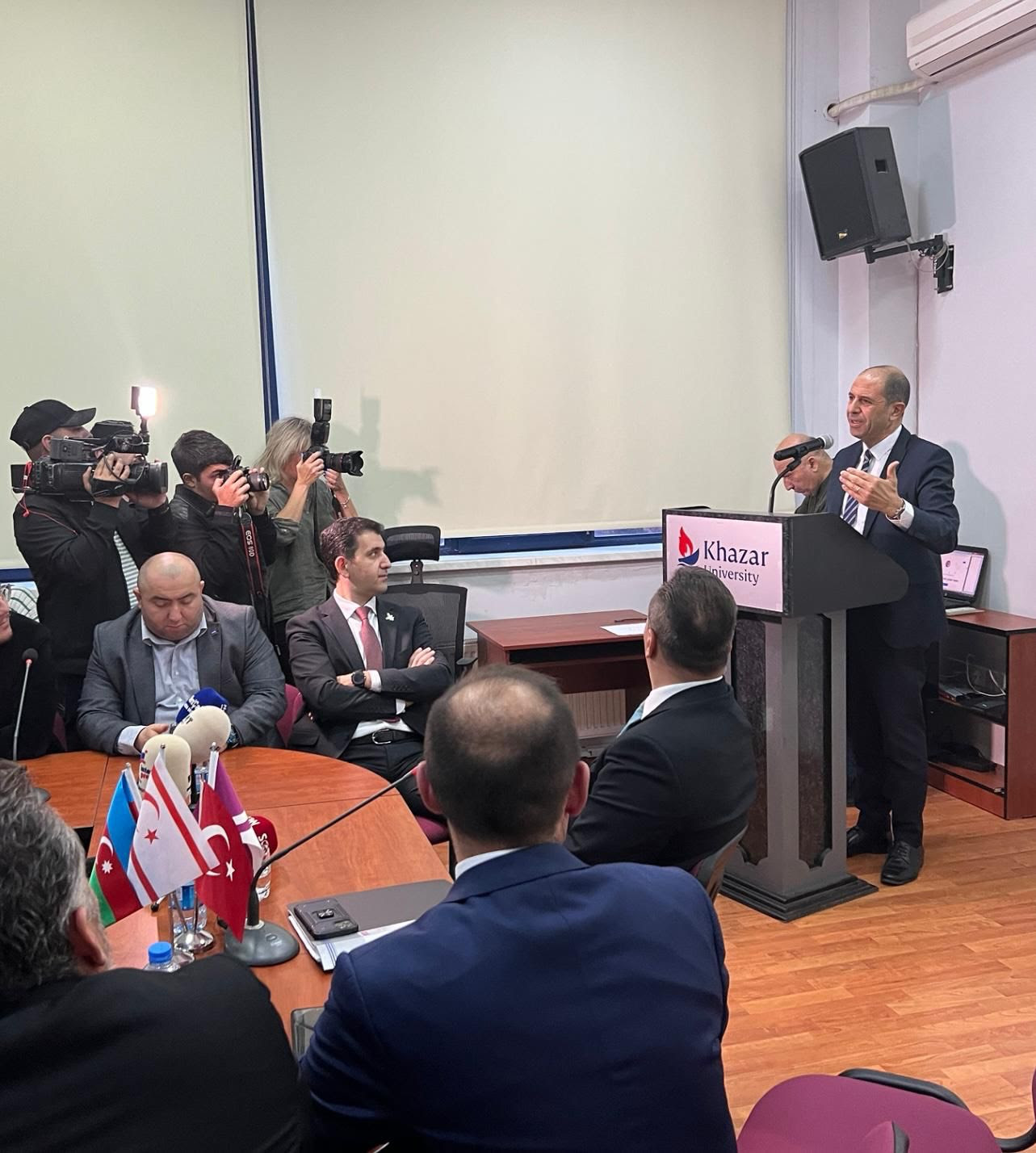 Lefkoşa, 24 Ekim 23 (TAK): Halkın Partisi (HP) Genel Başkanı Kudret Özersay, Azerbaycan’ın başkenti Bakü’de farklı üniversitelerde düzenlenen konferanslarda