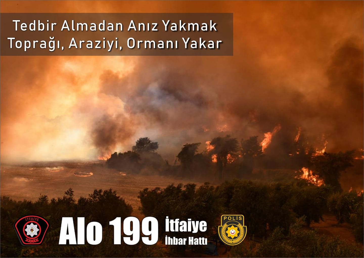 Lefkoşa, 24 Haziran 23 (T.A.K.): Polis, 1 Mayıs ile 31 Ekim tarihleri arasında temizlik maksadı ile olsa bile her türlü ateş yakmanın yasak olduğunu belirterek yangın önlemlerini hatırlattı.