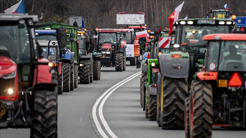 edilmesini protesto eden çiftçiler, başkent Varşova'ya giriş çıkış