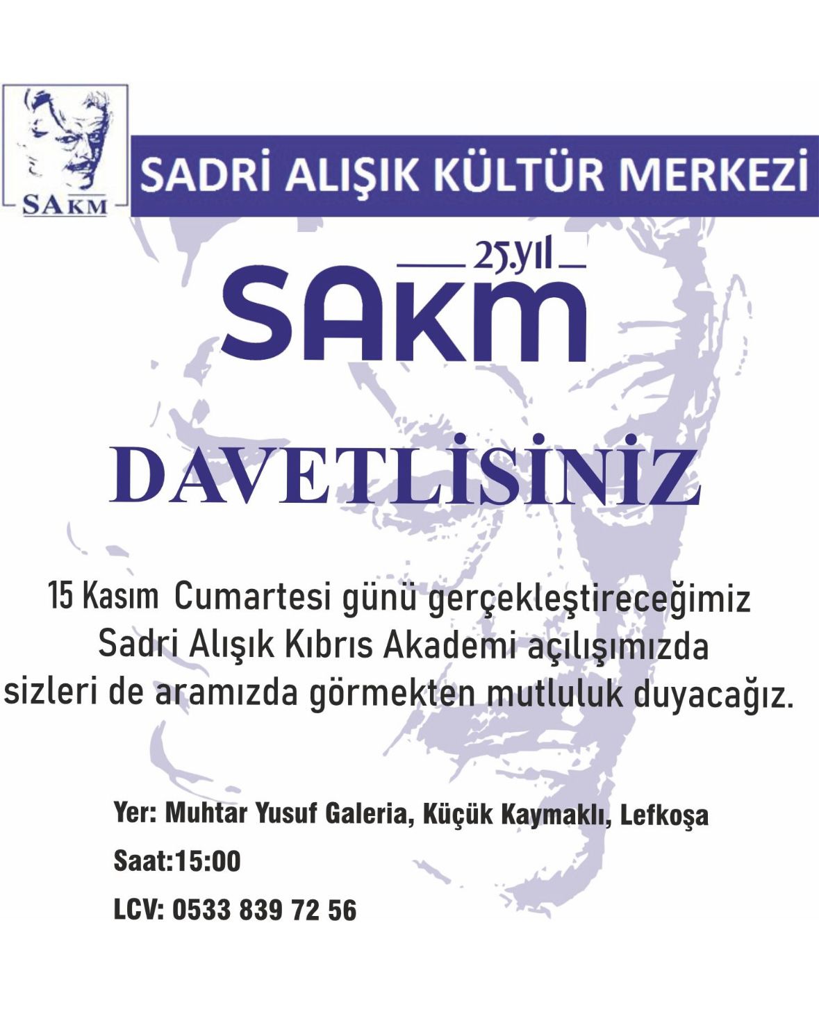 Lefkoşa, 11 Kasım 25 (TAK): Türkiye’nin sanat kurumlarından Sadri Alışık Kültür Merkezi Kıbrıs Akademi cumartesi günü Lefkoşa’da açılıyor.