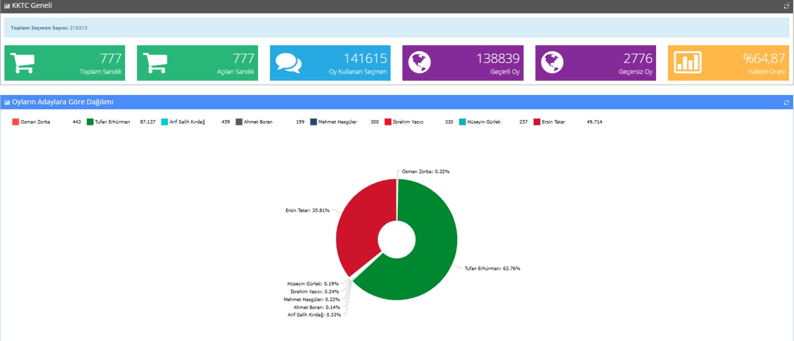 Cumhuriyetçi Türk Partisi adayı Tufan Erhürman en yüksek oyu Lefkoşa’da, Tatar ise en yüksek oyu İskele’de aldı