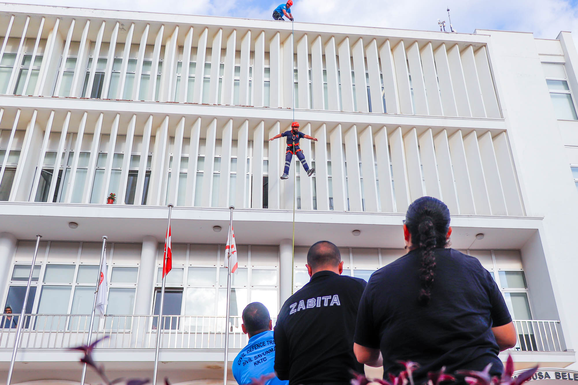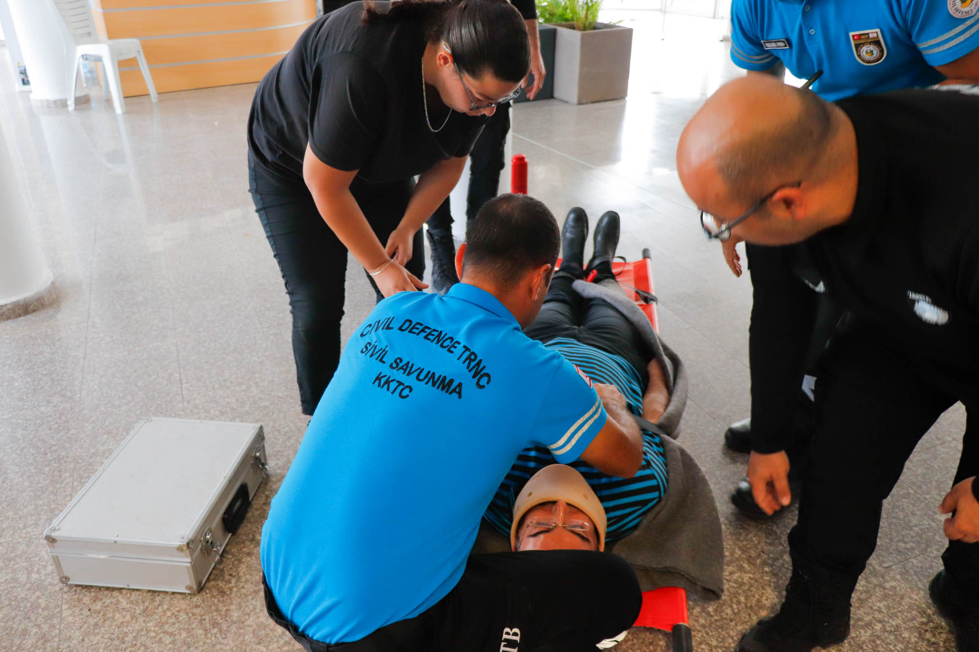 Lefkoşa, 20 Kasım 23 (TAK): Sivil Savunma Teşkilatı Başkanlığı Gazimağusa Bölge Müdürlüğü, “Yerinde Tatbikat ve Uygulama Eğitim” çalışması kapsamında Gazimağusa Belediyesinde deprem tahliyesi ve yangın tatbikatı yaptı.
