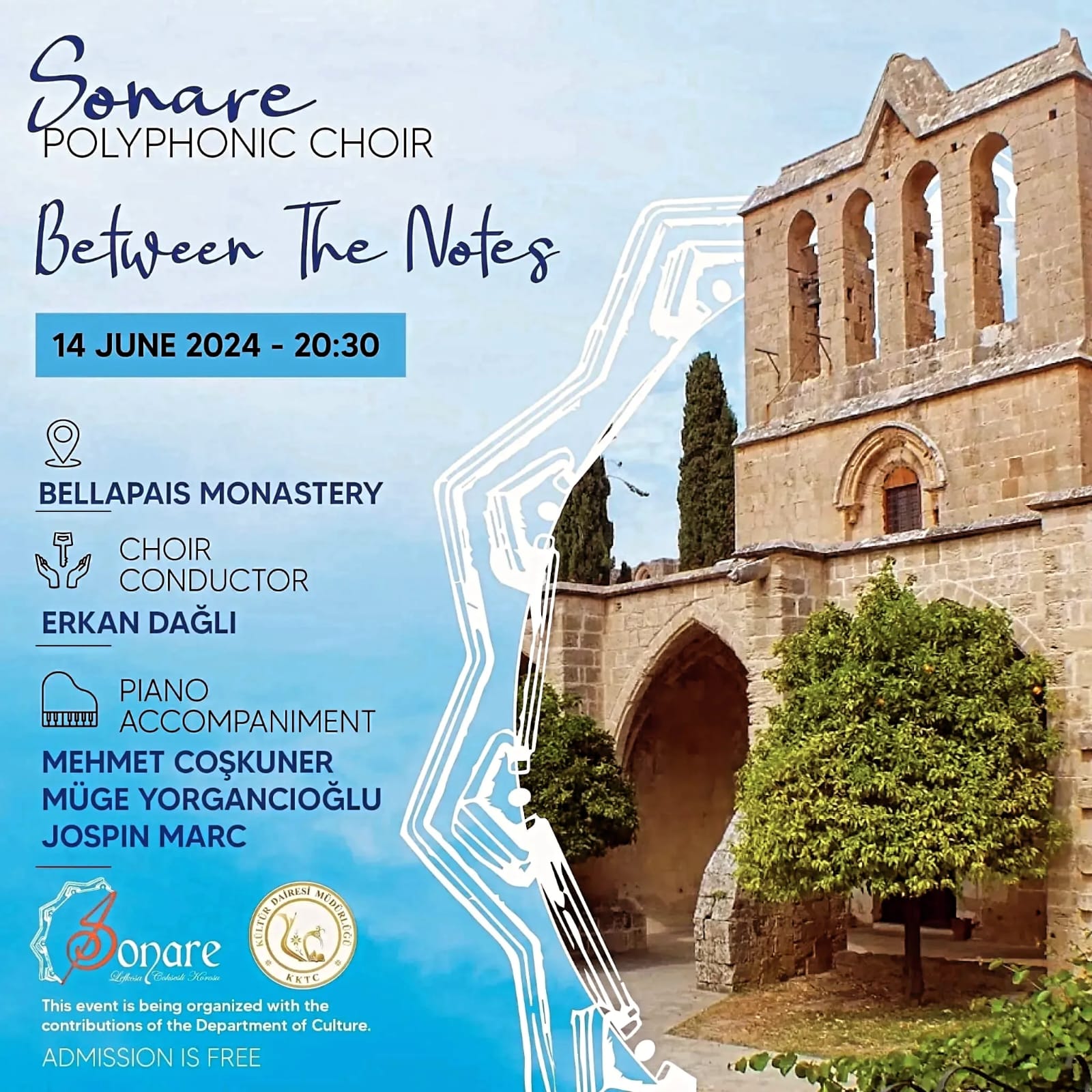 Lefkoşa, 10 Haziran 24 (TAK): Sonare Çoksesli Korolar Derneği Sonare Çoksesli Korosu, cuma akşamı saat 20.30’da Bellapais Manastırı’nda konser verecek.
