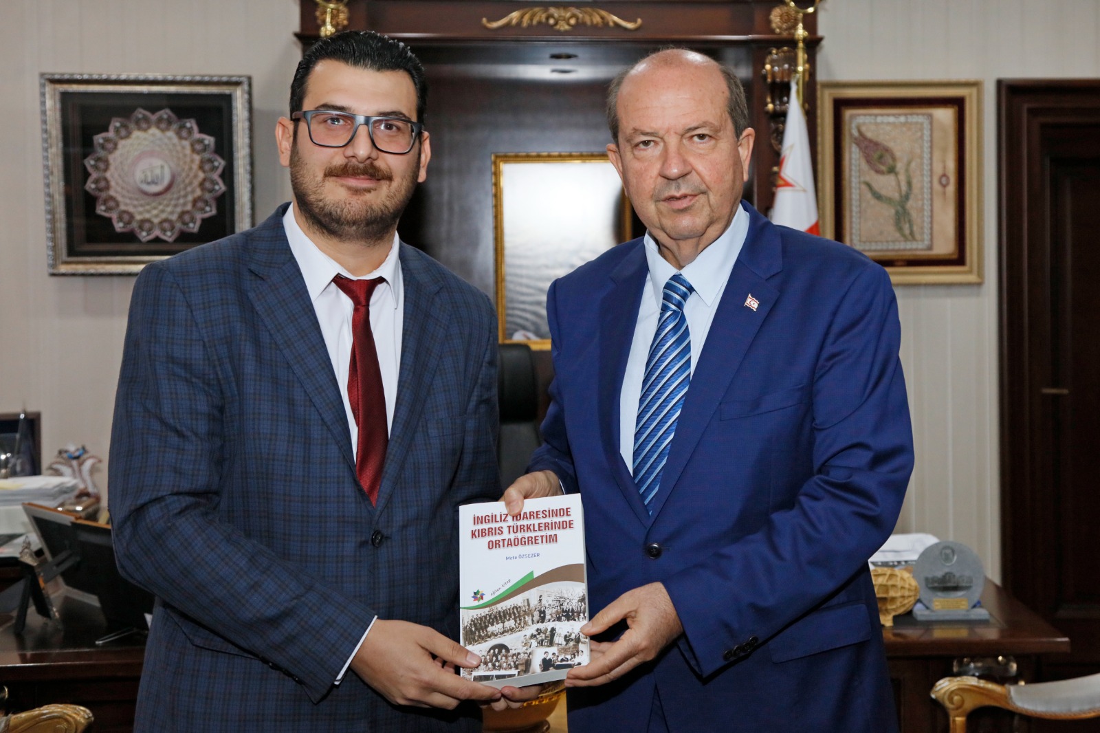 Tarih öğretmeni Özsezer, Cumhurbaşkanı Tatar’a, “İngiliz İdaresinde Kıbrıs Türklerinde Ortaöğretim” isimli kitabını takdim etti