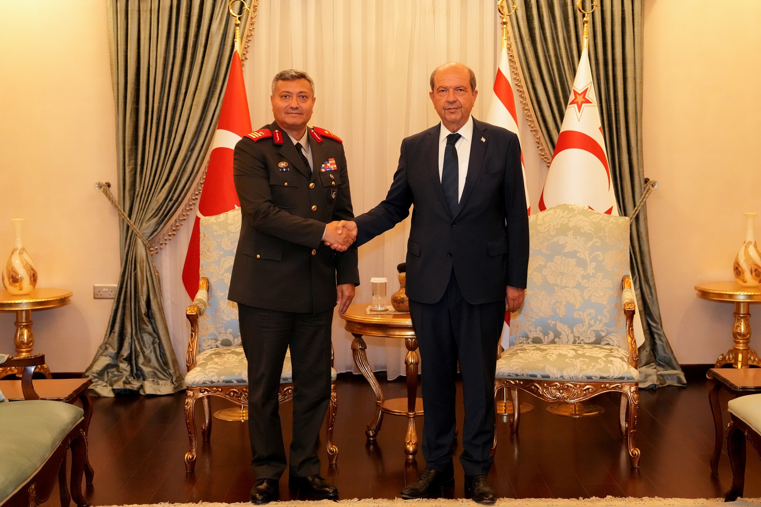 Lefkoşa, 19 Ağustos 24 (TAK): Cumhurbaşkanı Ersin Tatar, göreve yeni atanan Güvenlik Kuvvetleri Komutanı Tuğgeneral İlker Görgülü’yü kabul etti