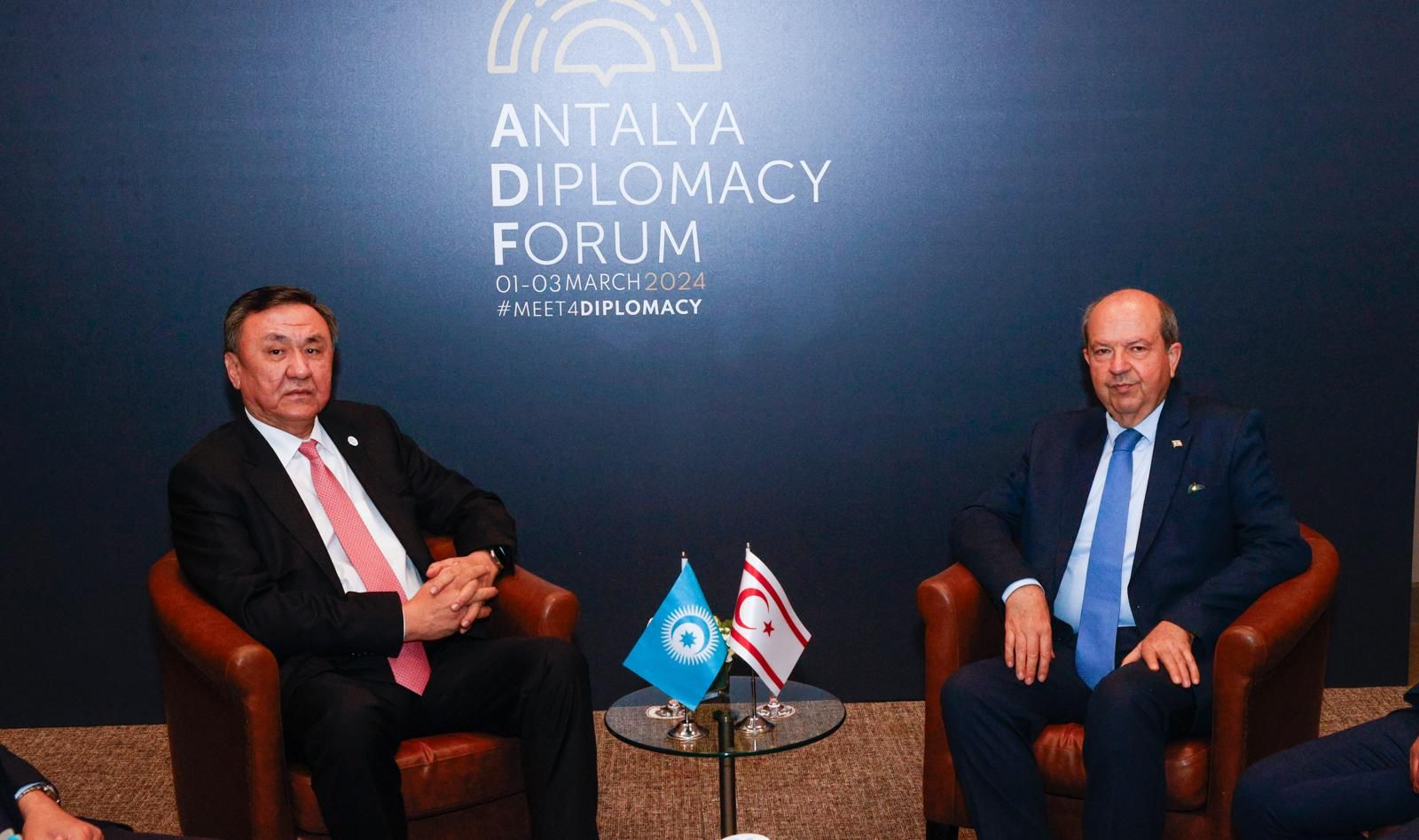 Lefkoşa, 3 Mart 24 (TAK): 3’üncü Antalya Diplomasi Forumu için Türkiye’de bulunan Cumhurbaşkanı Ersin Tatar, Türk Devletleri Teşkilatı (TDT) Genel Sekreteri Kubanıçbek Ömüraliyev ile bir araya geldi.