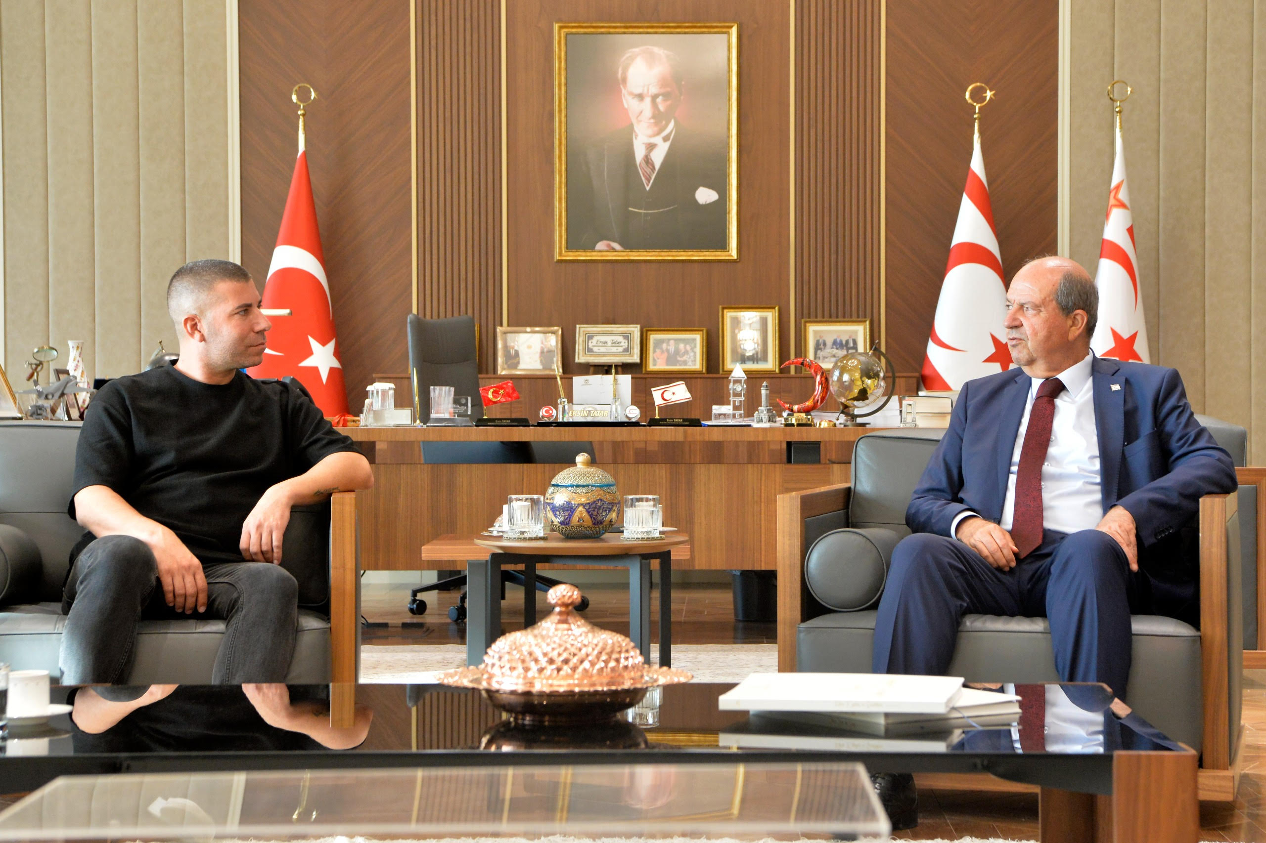 Lefkoşa, 16 Eylül 25 (TAK): Cumhurbaşkanı Ersin Tatar, Baf Ülkü Yurdu Spor Kulübü Başkanı Mustafa Altun ve Yönetim Kurulu’nu kabul ederek görüştü.